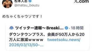 なんG ダウンタウン+、登録者50万人→20万人wyvyywyw