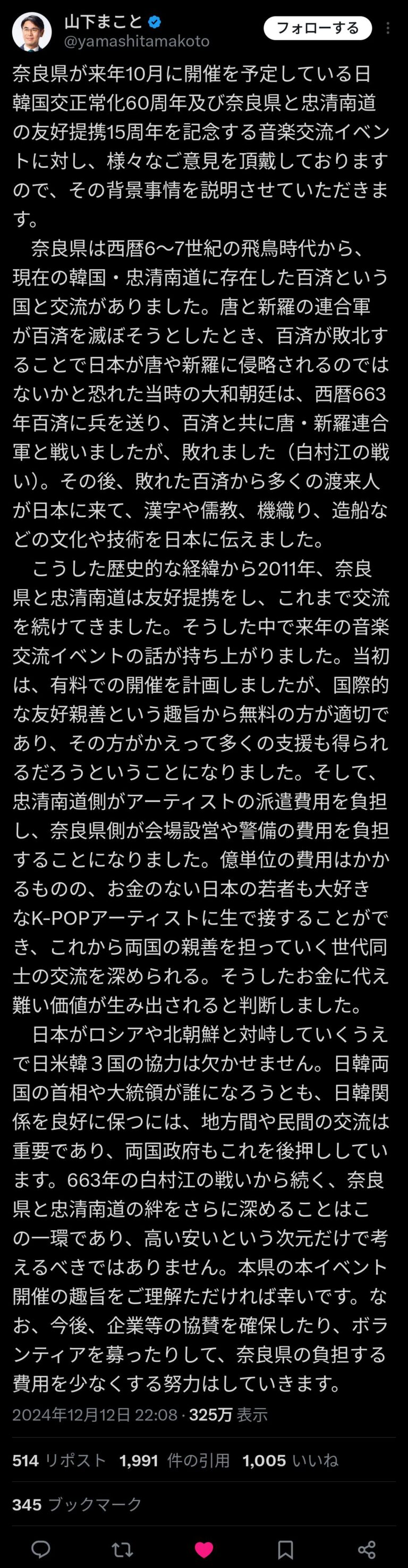 【正論】奈良・山下知事、長文で怒りのお気持ち表明「市が約三億払ってでもK-POPを広める価値はある。貧乏な若者のためにも」
