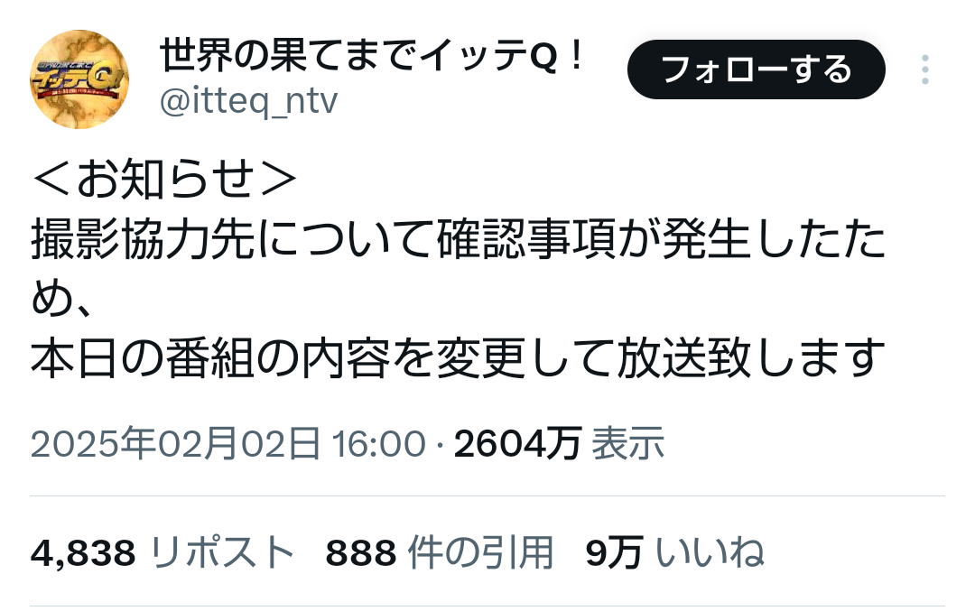 統一教会信者「う関連団体がイッテQで取り上げられるの!」日テレ「え、あれ壺団体なの!?」急遽内容変更