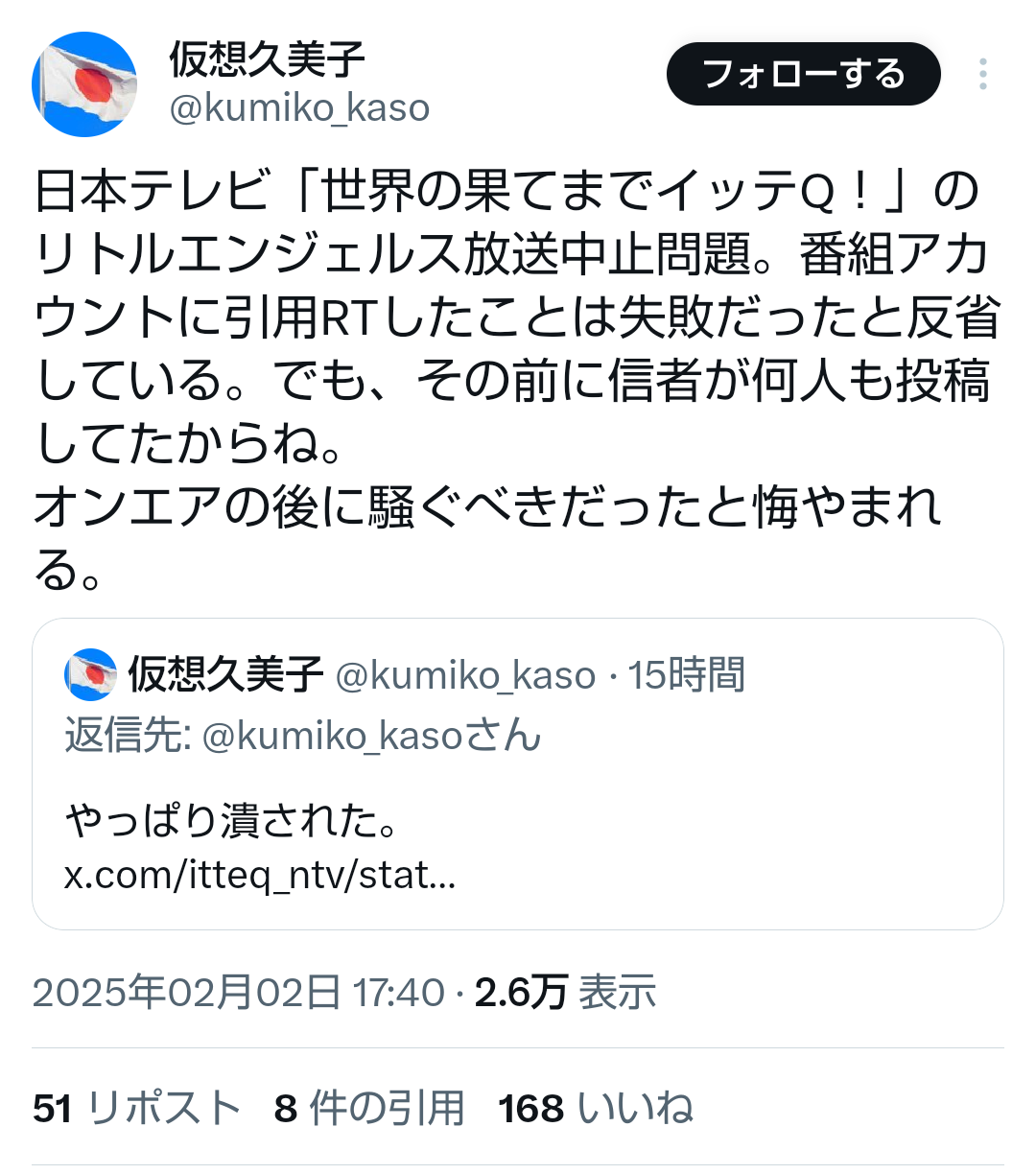テレビが差別や誹謗中傷を助長させるような放送中止しない方がよかった