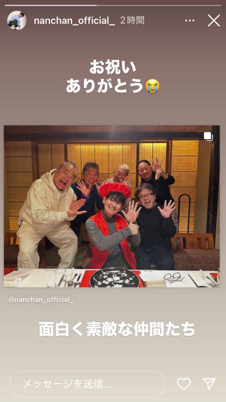 ナンチャン「僕の還暦を祝うためにすごいメンバーが来たよパシャ」