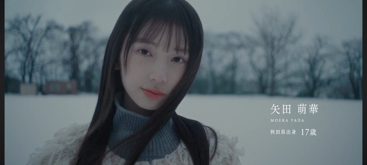 矢田は秋田県出身の17歳。秋田県にて撮影された美しい風景と共に、映像にて矢田が紹介されている。映像内では幼少期の写真が写されており、幼い頃の矢田の様子を見ることができる。