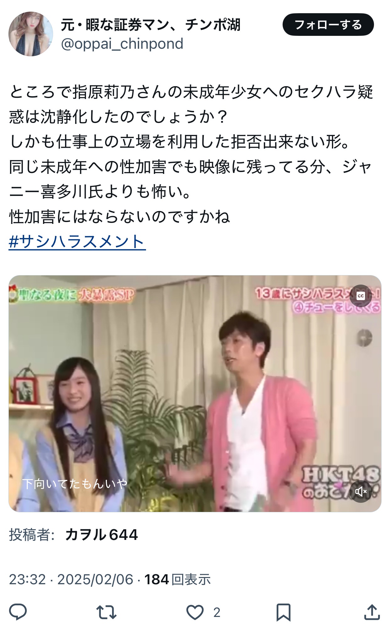 【動画像】指原莉乃さんの未成年への性加害問題は、なぜ黙殺されたのか これ見過ごしていいの?おかしくないか?