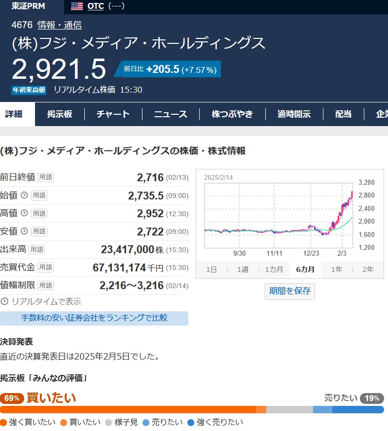今の状況見て「あ、フジテレビはこれで倒産するだろうな」って判断する人はまぁ見る目がないと思うわ - 30 : 2025/02/14(金) 18:27:18.73 ID:BAexaEAl0St.V