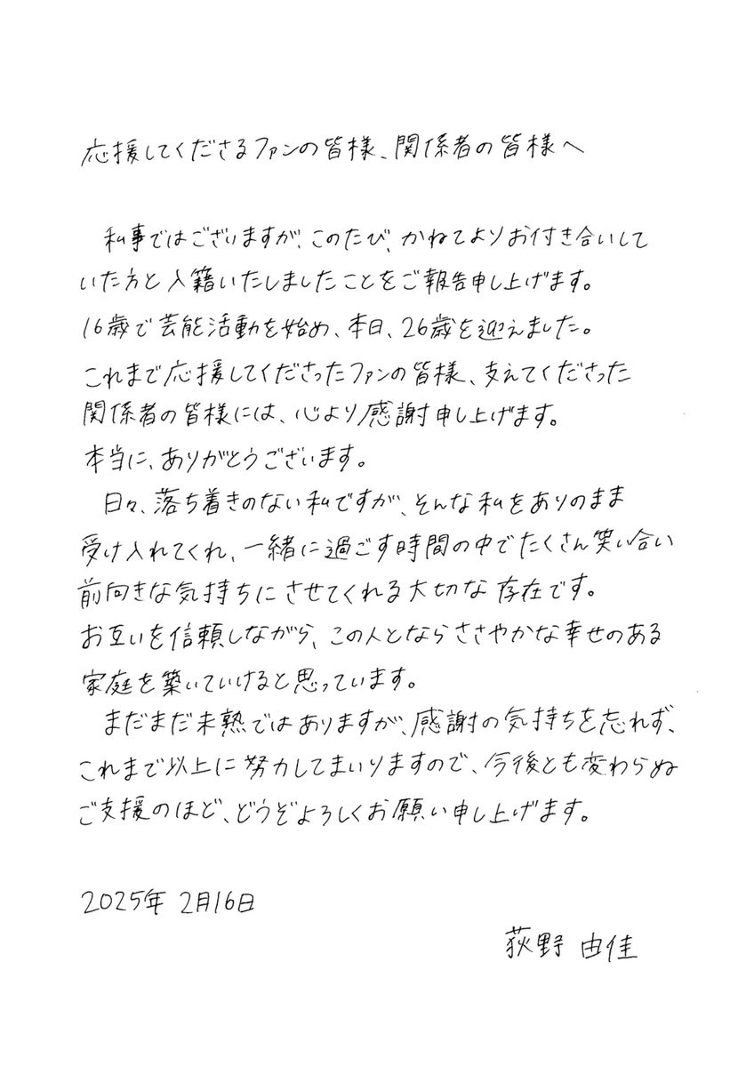 新潟の至宝こと元NGT48荻野由佳(26歳)さんが結婚!ちょっと横になるわ…