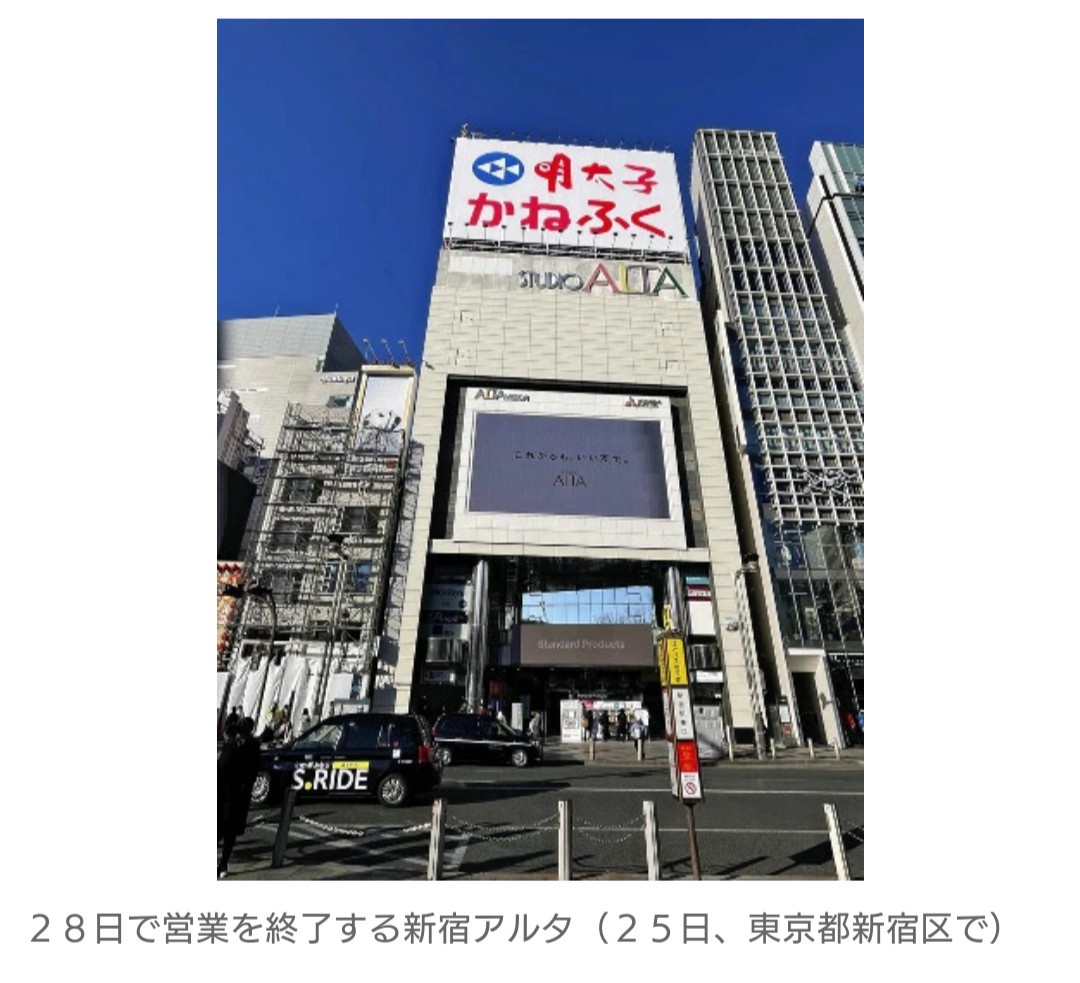 スタジオのほか、アパレルや雑貨店が入居するアルタの営業終了が発表されたのは昨年3月。収益悪化などが背景にあるという。