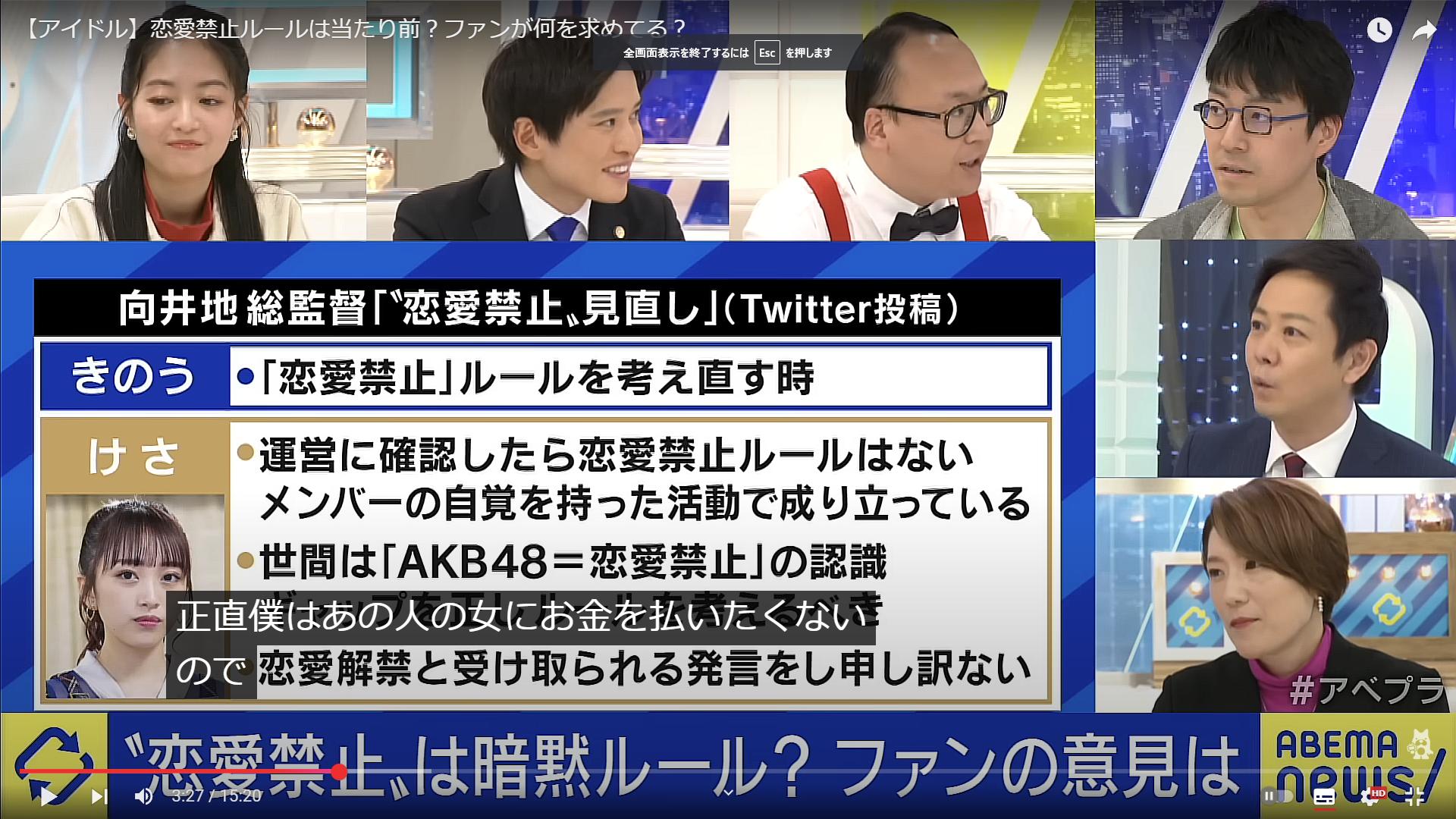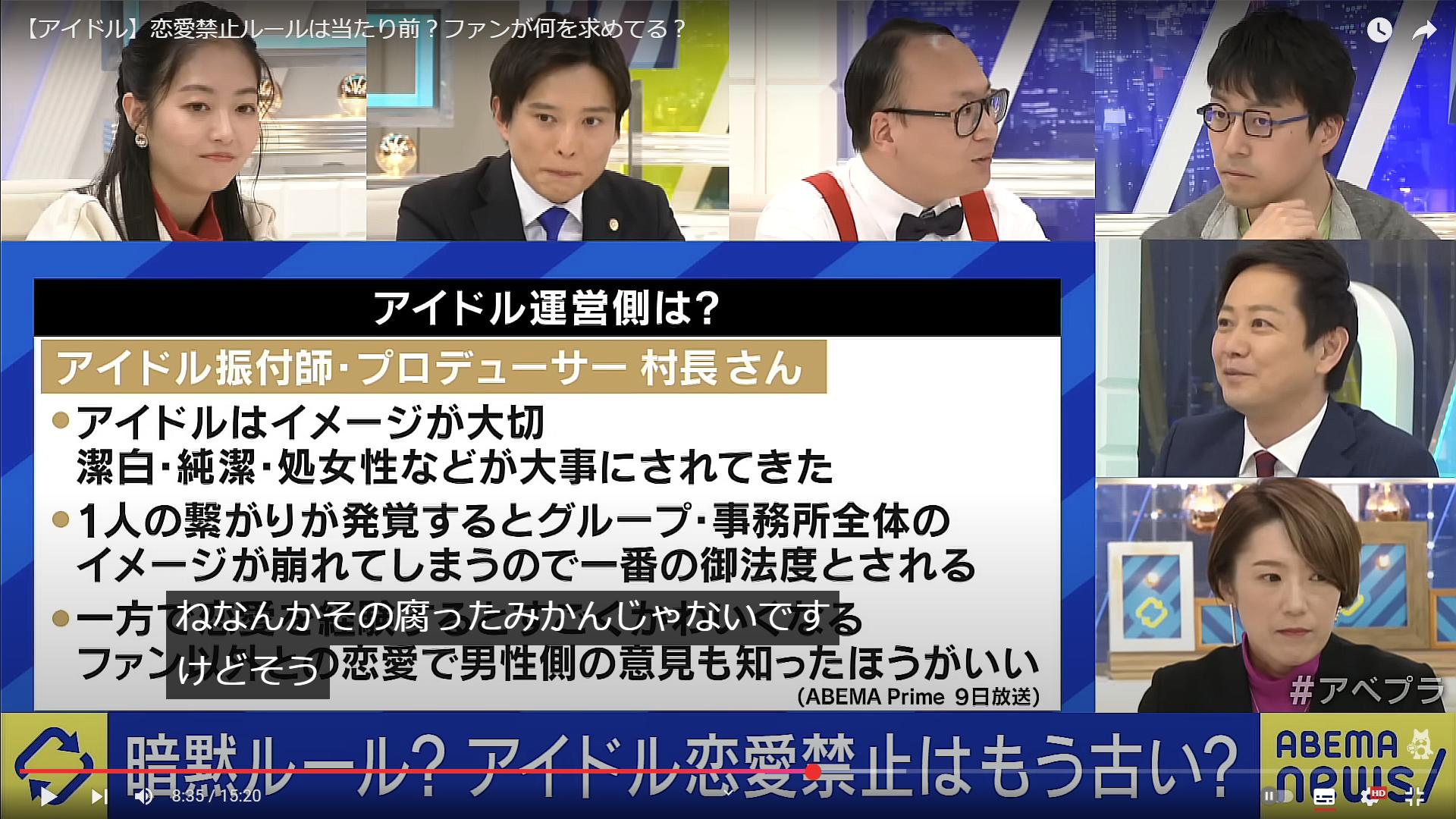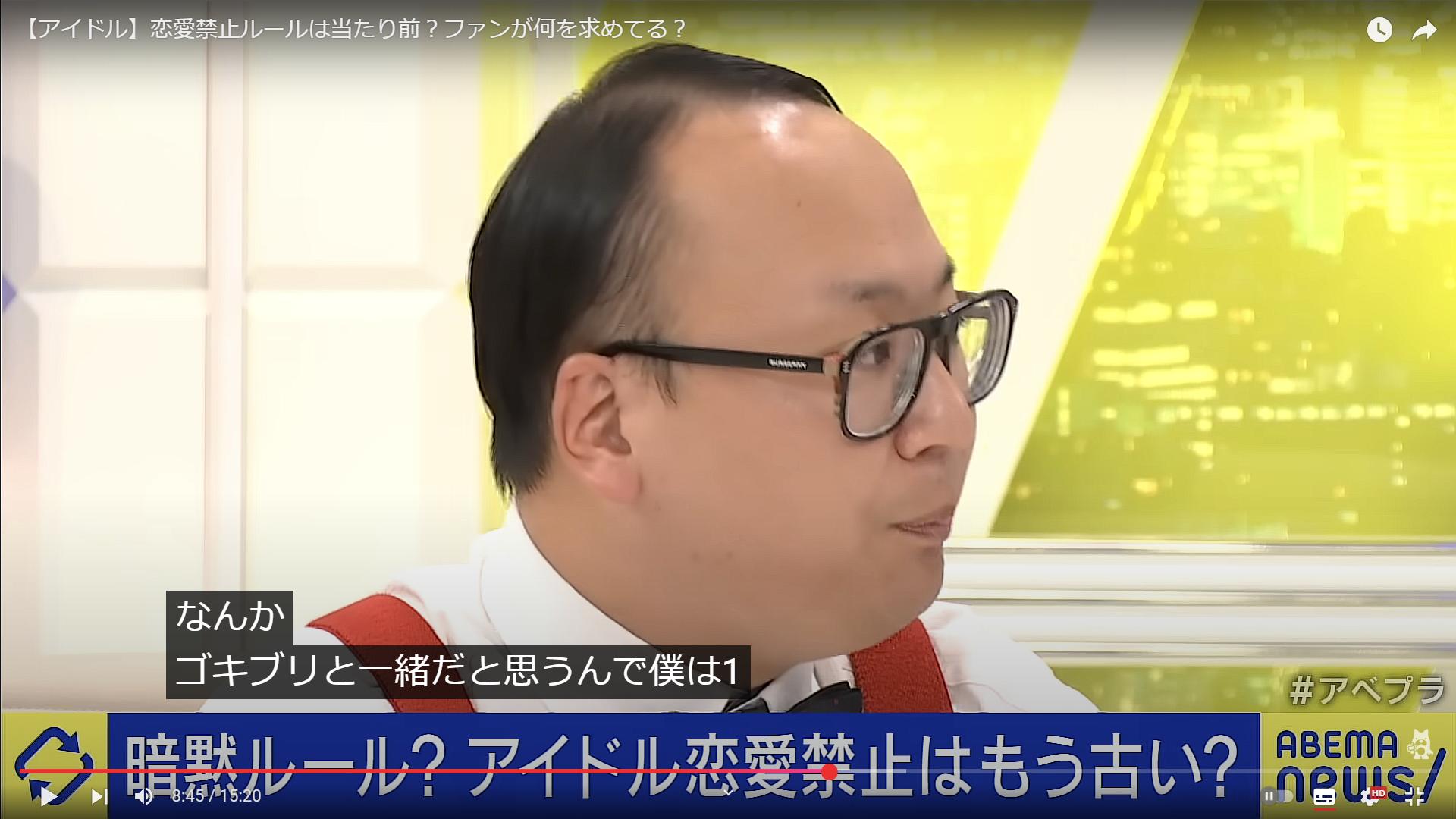 https://news.yahoo.co.jp/articles/4a3f4688a7c0cc2225979da2bd31ff70f54ecacbたかし「グループに恋愛してるアイドルが一人いたら腐ったみかんじゃないけど、そういう考えが感染する」