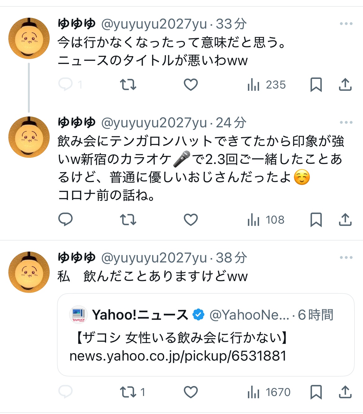 番組やイベントの打ち上げでたまたまその場に居合わせただけのことを