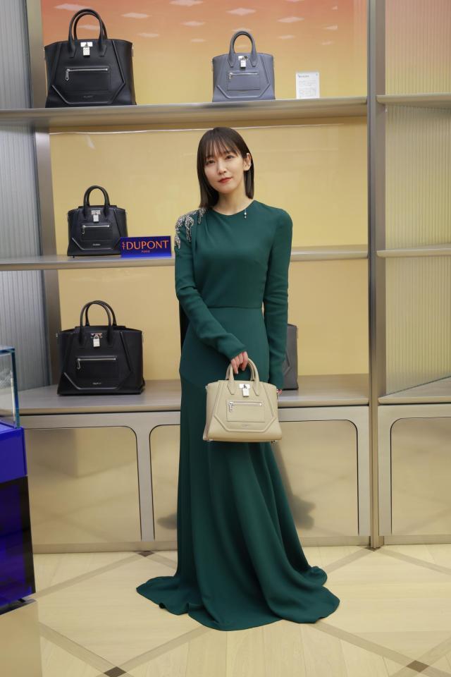 女優の吉岡里帆(32)が2日、都内で、仏発のラグジュアリーブランド「エス・テー・デュポン」の銀座フラッグシップグランドオープン記念イベントに出席した。グリーンドレスと、仏女優のオードリー・ヘプバーンが愛用したバッグ「リヴィエラ」を合わせ、優美なスタイルを披露した。