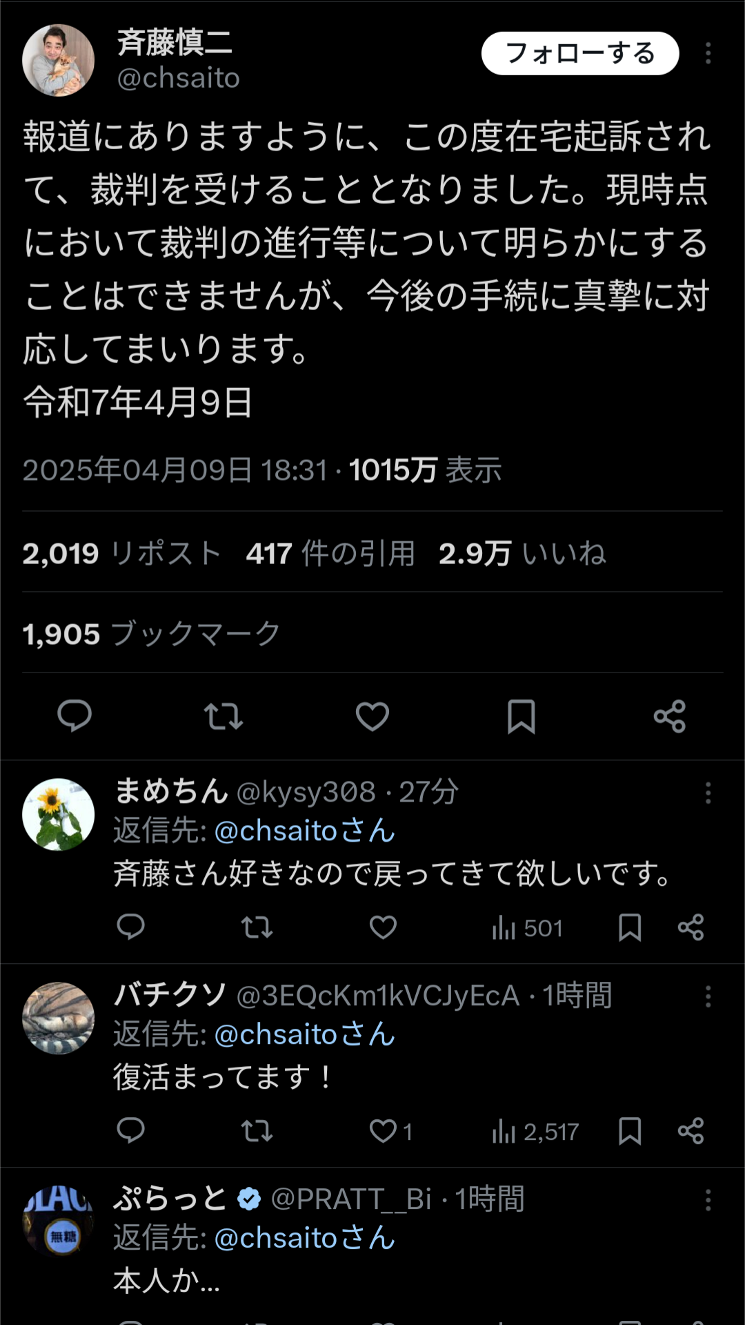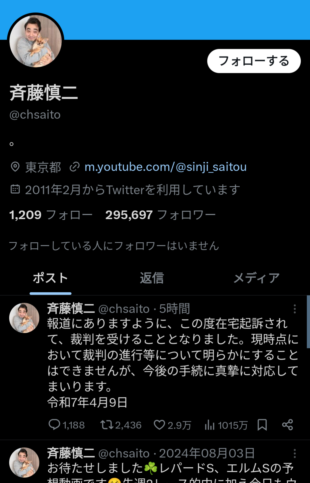 斉藤慎二メンバー、youtubeチャンネル開設、今後は在宅起訴系ユーチューバーとして活動か