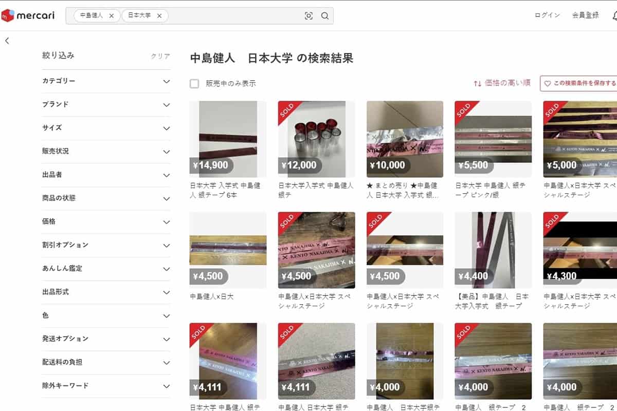 《メルカリで日大入学式の中島健人の銀テープ売るのやめて》