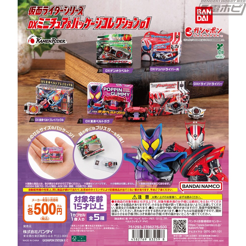 バンダイより、ガシャポン「仮面ライダーシリーズ DXミニチュア&パッケージコレクション01」が登場! 2025年4月第4週発売予定です。