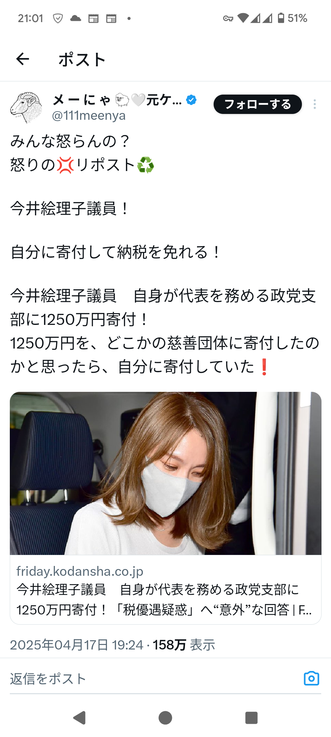 【SPEED】今井絵理子議員、自身が代表を務める政党支部に1250万円寄付する【脱税】