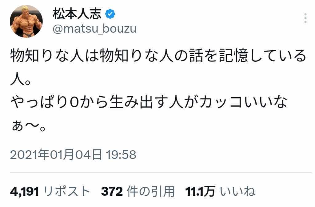 松本人志「勉強する人より0から生み出す人がカッコいいなぁ」