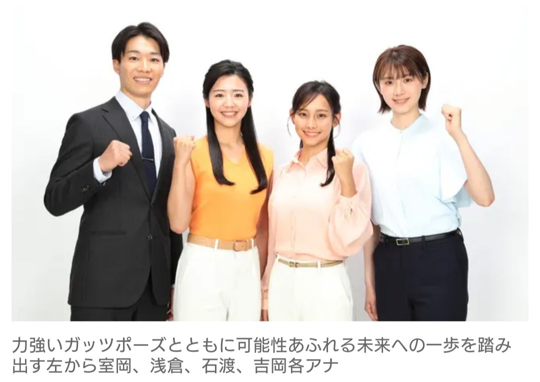 フジ新人アナがお披露目! 個性豊かな4人がそれぞれ猛アピール4月にフジテレビに入社した浅倉美恩(みおん、22)、石渡花菜(はな、23)、室岡大晴(25)、吉岡恵麻(22)の各新人アナウンサーが28日、サンケイスポーツにお披露目された。
