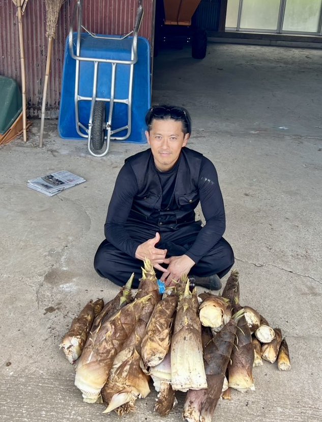 Xでは「シーズン終わりかけでしたが、ギリギリ間に合いました…!今年も有り難くいただきます」と笑顔の写真を公開。大量のタケノコを前にポーズを決めている。