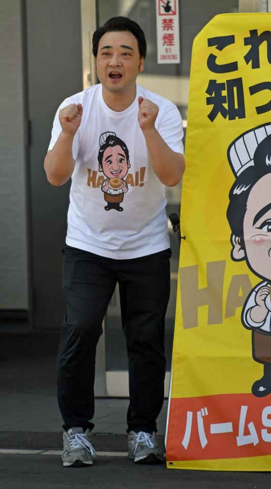 10時からの販売で9時から長蛇の列ができ、購入まで1時間15分待ちの大盛況。約1500個が飛ぶように売れた。購入客一人一人と対応し、持ちネタの「はぁーい!」を披露し記念撮影に応じ、デイリースポーツの取材に「取材にはお答えしておりません。お受けしておりません」と答えた。