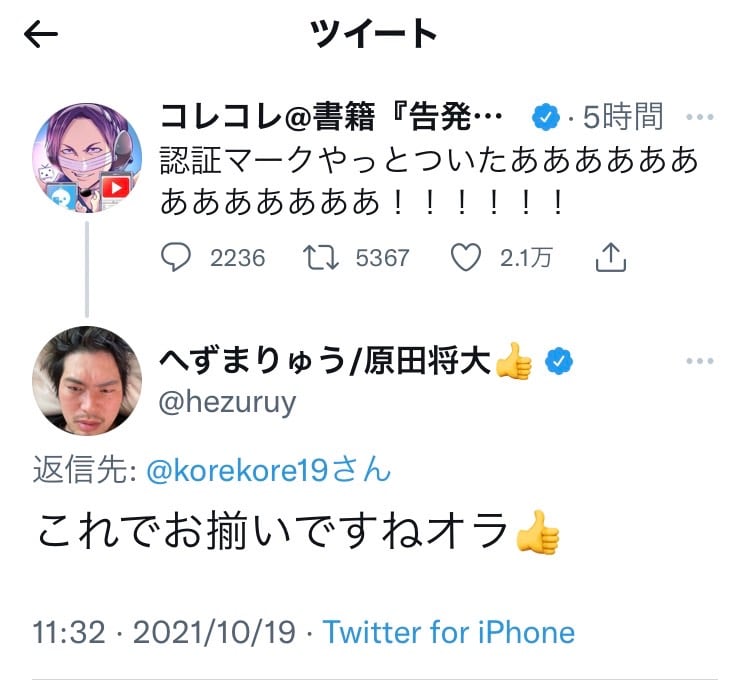 と投稿。翌日に実施したYouTubeライブでは、「なんと僕がね、NHKにコテコテさんとして出てる」「いやぁこれ、すごい嬉しいっすけどね。あの天下のNHKですよ?天下のNHKがね、僕のオマージュしたキャラクターをドラマに出してる」とコメントしました。