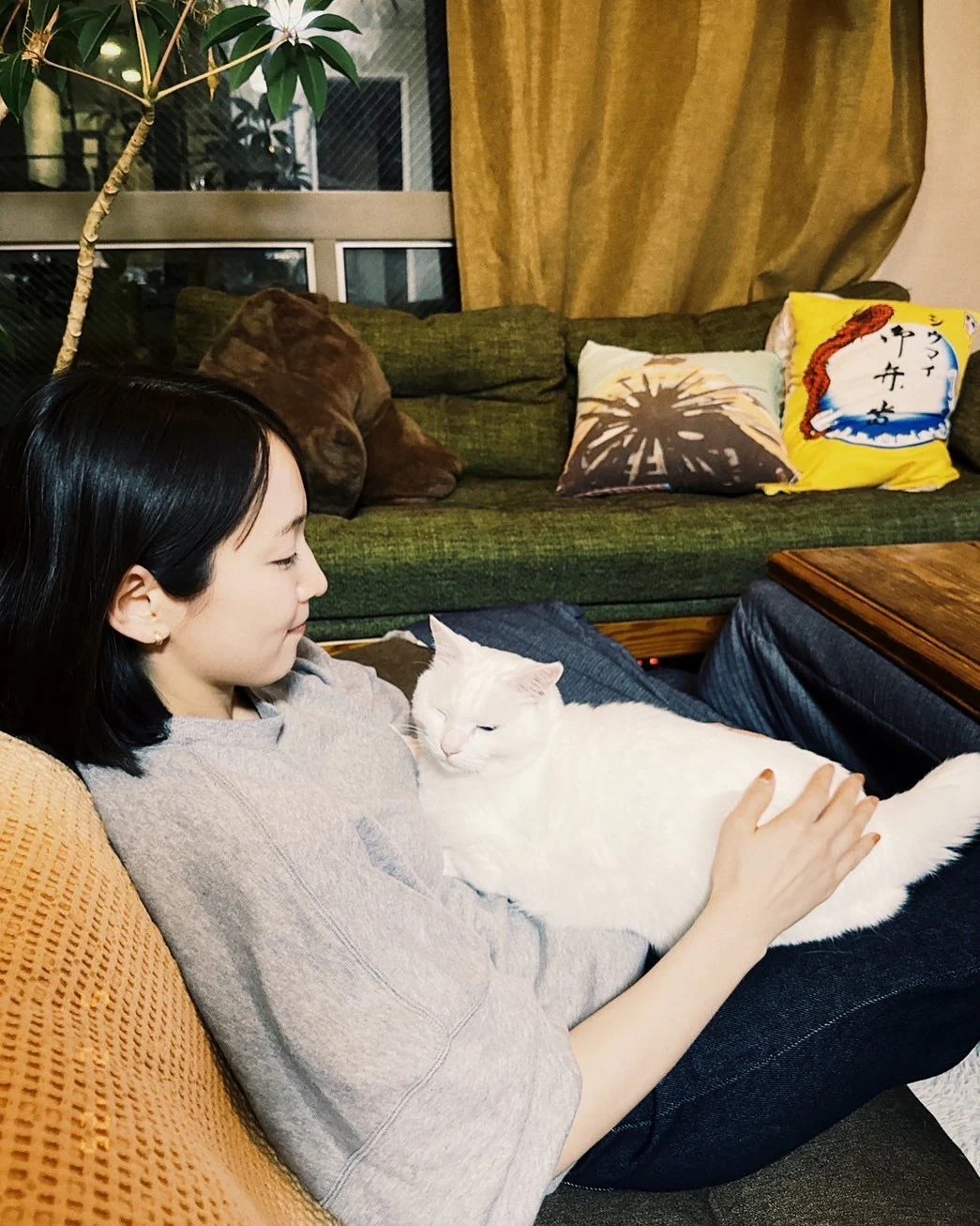 【吉岡里帆】「なんという可愛さ」白猫とたわむれるオフショットを公開 「私も猫になりたい」「里帆ちゃんという特等席に座ってる」と反響続々