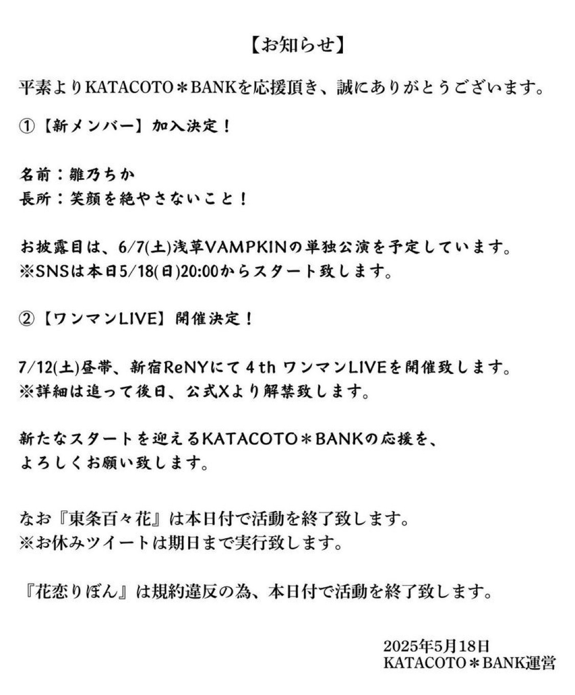 活動終了発表は3日前 - 8 : 2025/05/22(木) 07:07:11.59 ID:t72R+yTK0