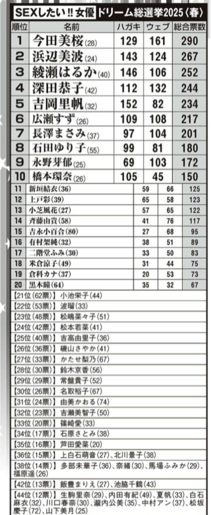 斉藤由貴・吉永小百合より順位が低い人は今後の売り方を考えたほうがいいかも
