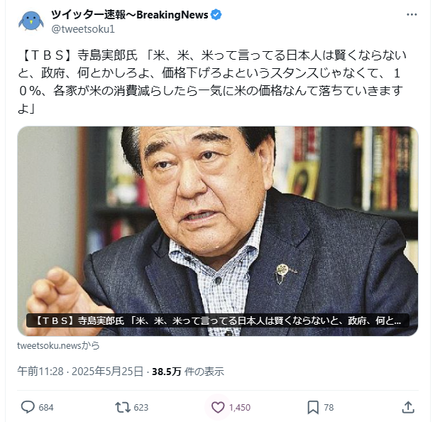 寺島氏の発言は、価格決定メカニズムの一側面を指摘し、消費者の主体的な関与を促すという点で示唆に富むものの、その提案を現実的な政策としてそのまま受け止めるには多くの課題があると言えるでしょう。むしろ、食料問題や農業政策のあり方について、多角的な議論を喚起する一つの視点として捉えるべきかもしれません。 - 95 : 2025/05/26(月) 23:58:25.69 ID:MwmX/GO90