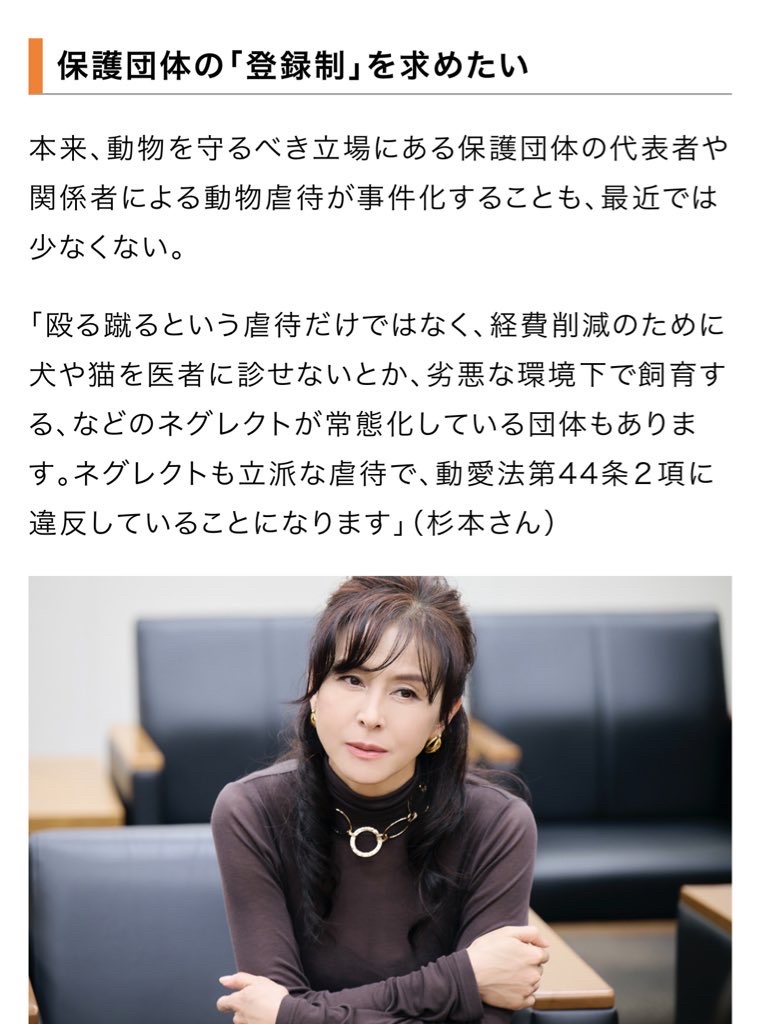 杉本彩「愛護団体が問題を起こすケースが増えているので、規制したい」