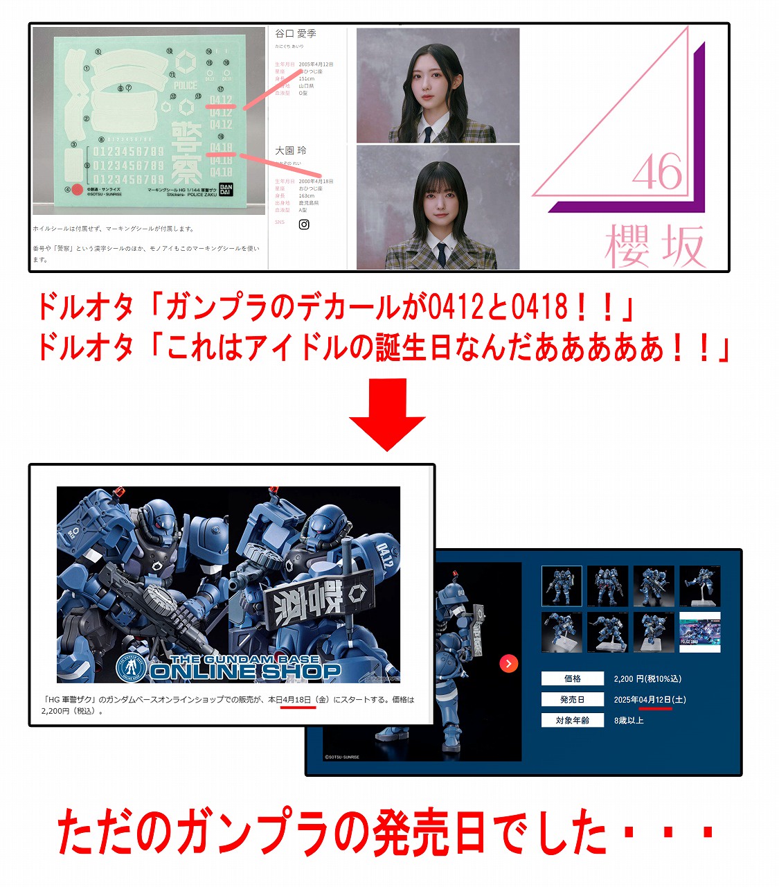 ガンプラの発売日まで乃木坂に合わせたとも言えるから3つ目は違わないだろ