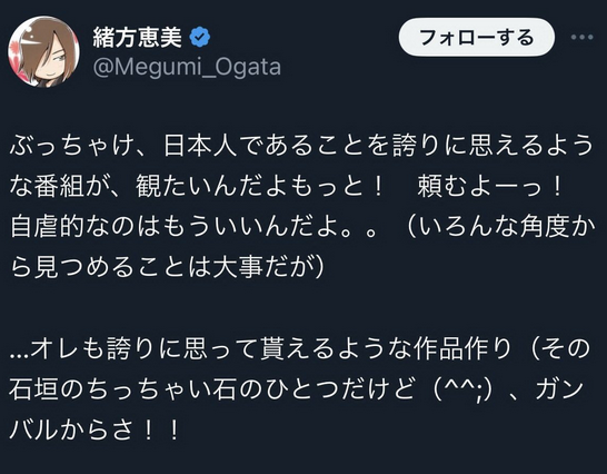 指揮者「もっと日本人であることを誇りに思える番組が見たい。自虐的な番組はもういらない」