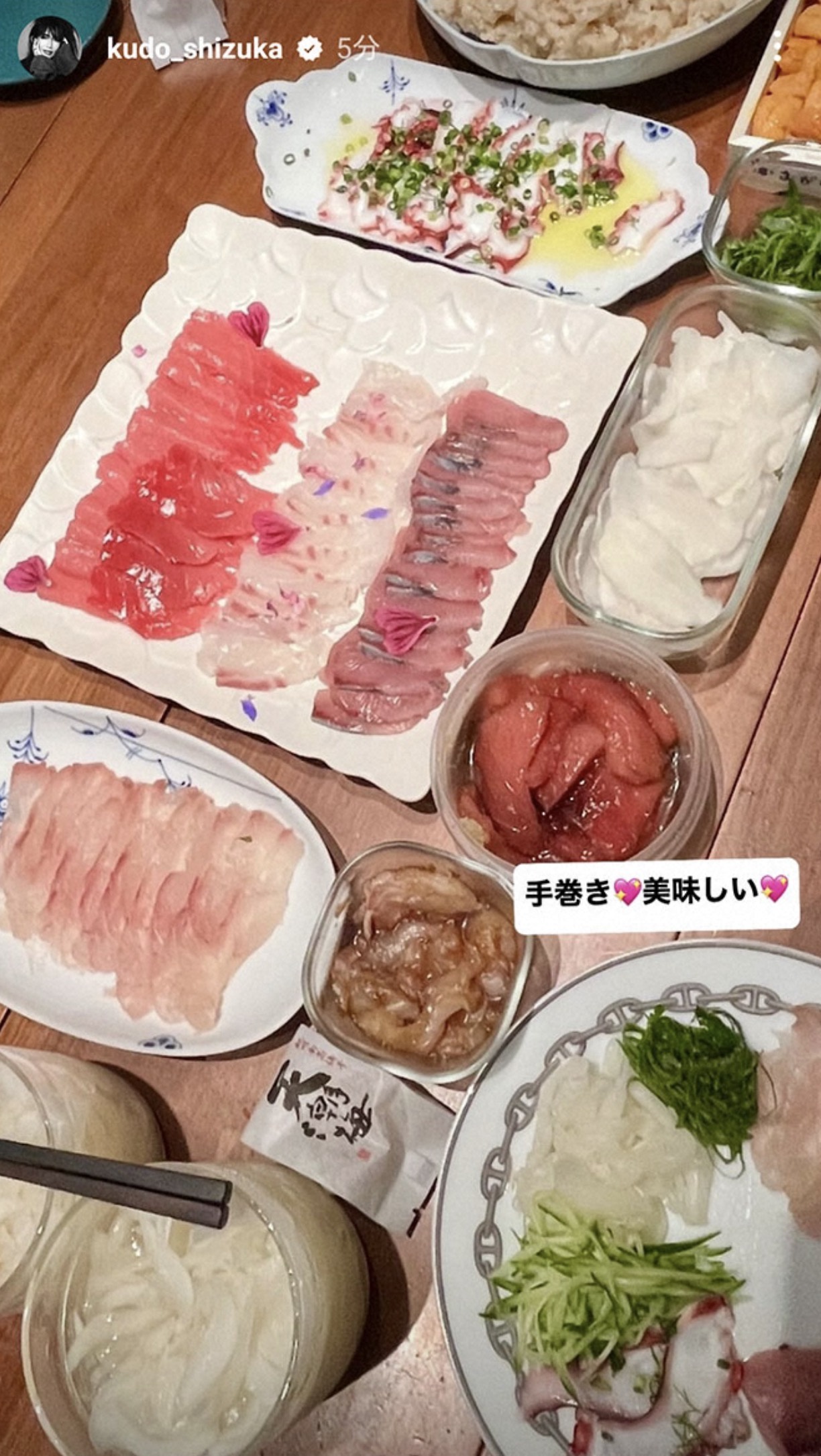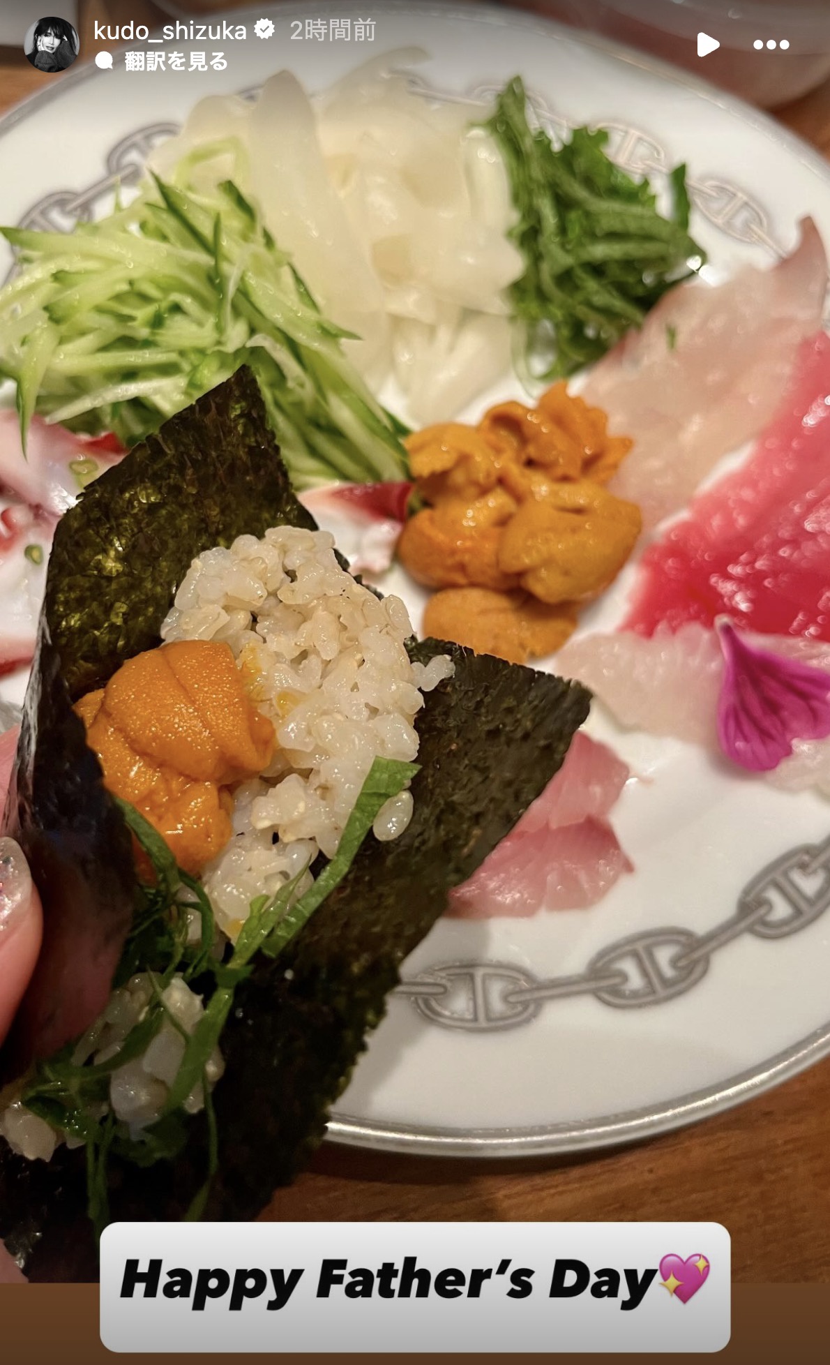 また、工藤もインスタグラムに「Happy Father's Day」という言葉にピンクのハートマークを添えて投稿。豪華な手巻き寿司で祝ったことを報告している。