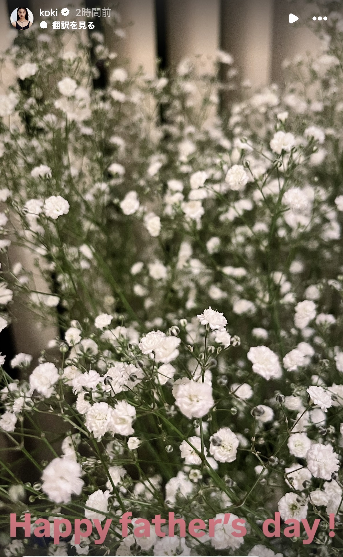 また、Koki,はストーリーズでカスミ草の写真に「Happy Father’s Day!」の言葉を添えた。