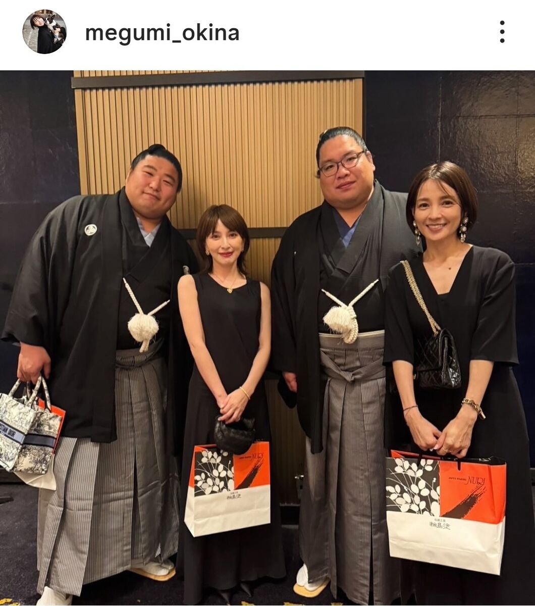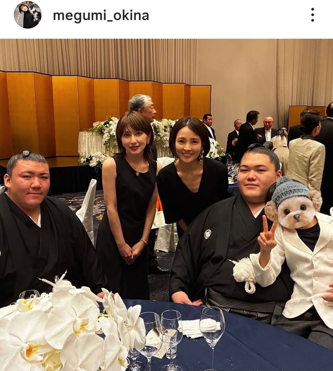 続く投稿では「久しぶりに国仲涼子ちゃんにも会えて嬉しかったし、輝関と奥様の幸せな笑顔&お相撲さんに囲まれて私まで幸せな1日!!」とつづり、女優・国仲涼子(46)との再会に喜ぶ。2人は同じテーブルで、楽しそうに記念撮影した。
