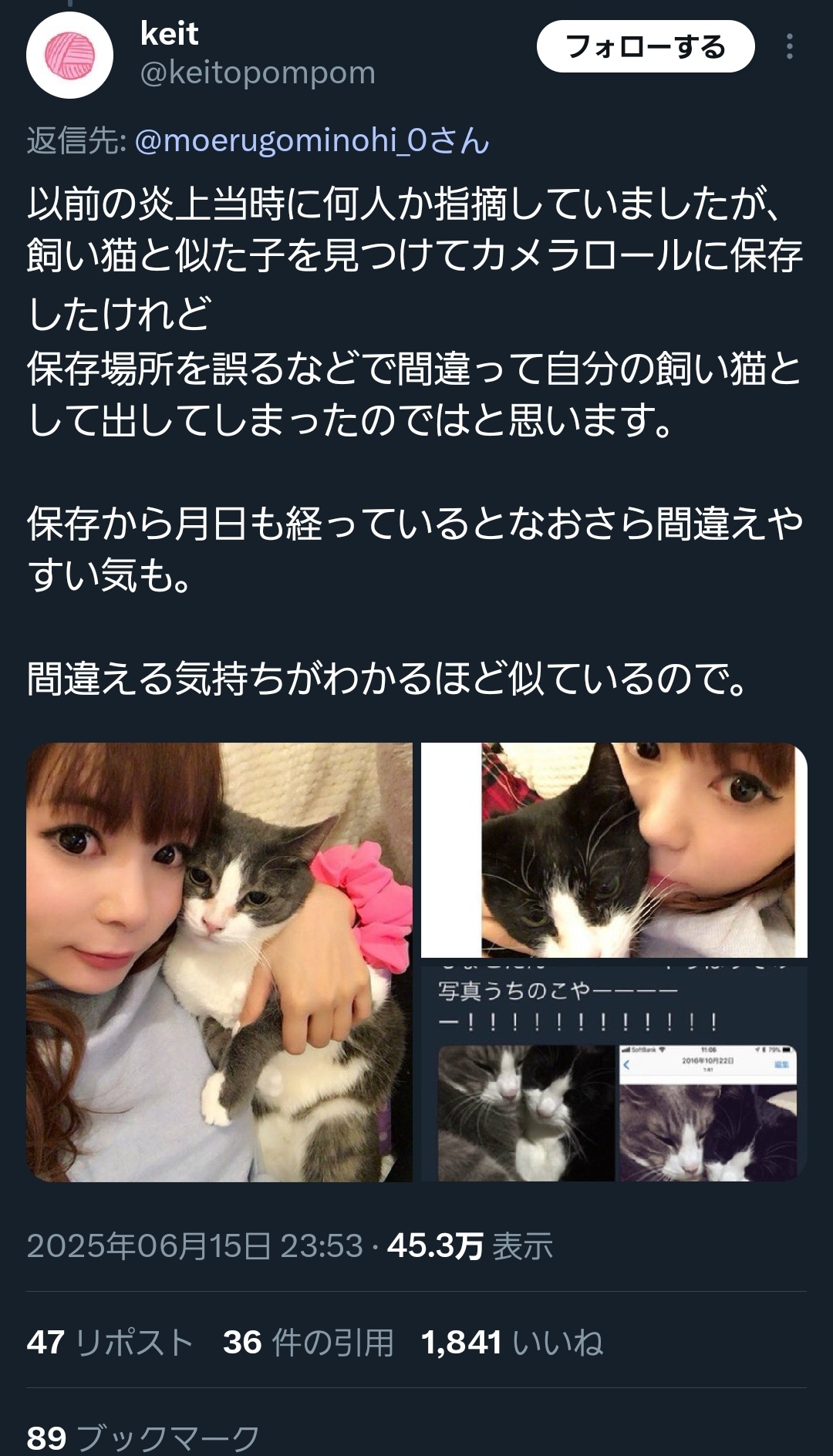 「しょこたんウチのネコやーーー!」、冤罪だった・・・