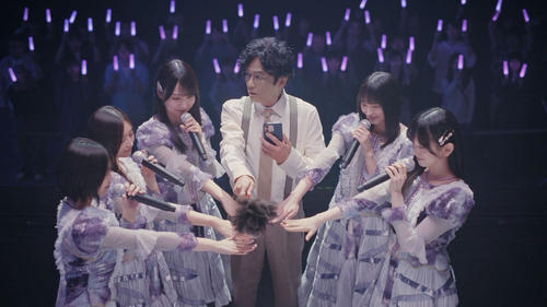 稲垣が街角の小さなニューススタンドの開店準備をしていると、突然、乃木坂46のメンバーが登場。場面が一転してライブ会場に変わったり、休憩中の乃木坂46のメンバーの中に紛れ込んだり。まるで異世界転生のように「ニュースが人々を次の場所へ連れていく」不思議な展開が描かれている。