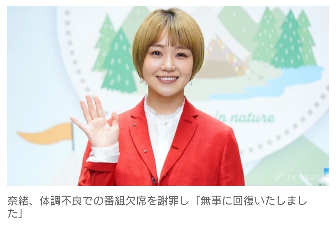 奈緒、体調不良での番組欠席を謝罪し「無事に回復いたしました」