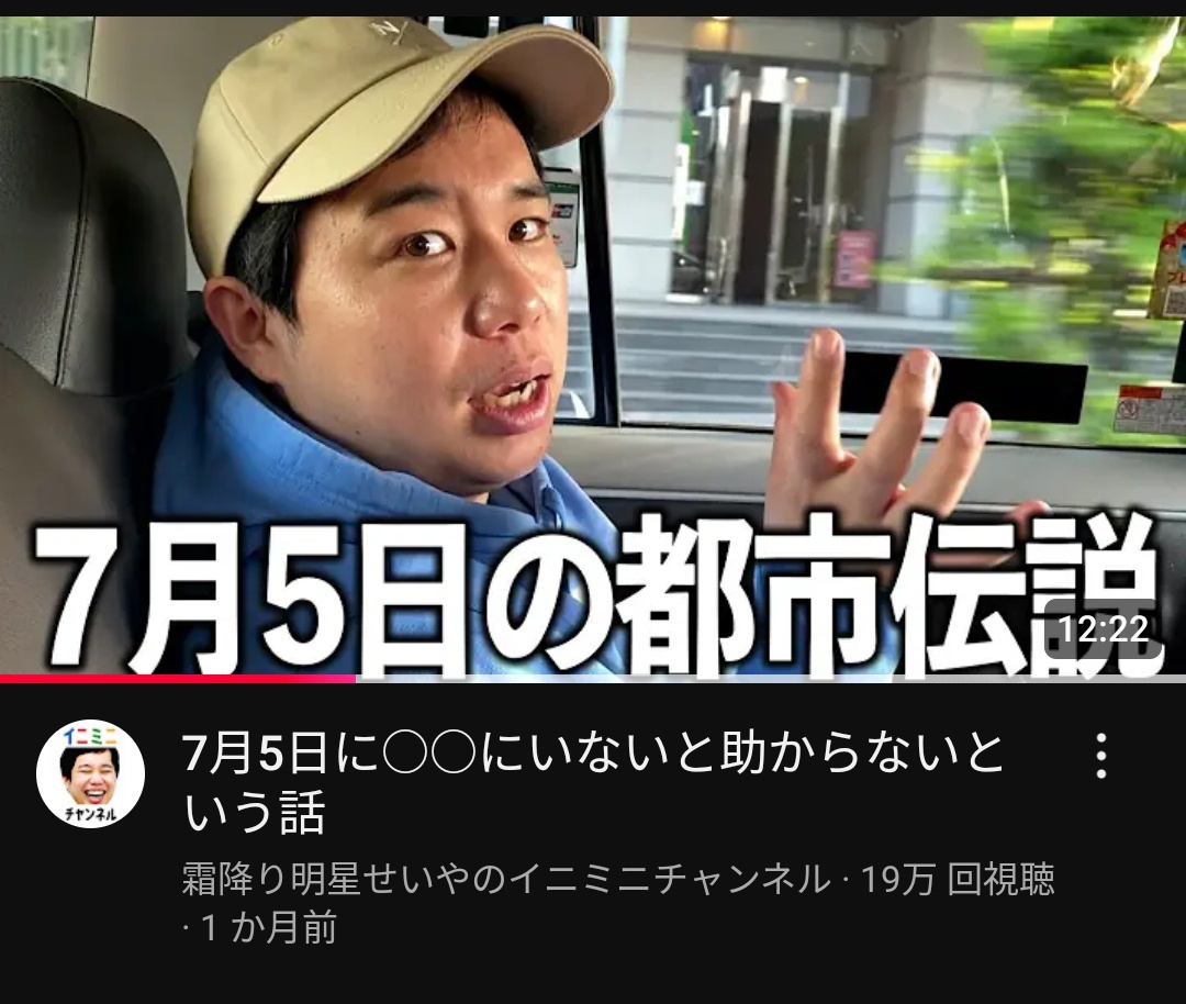 7月5日の予言、ガチで芸能界にも広がりまくる 霜降りせいや「小日向文世さんはもう長野県に避難してる」