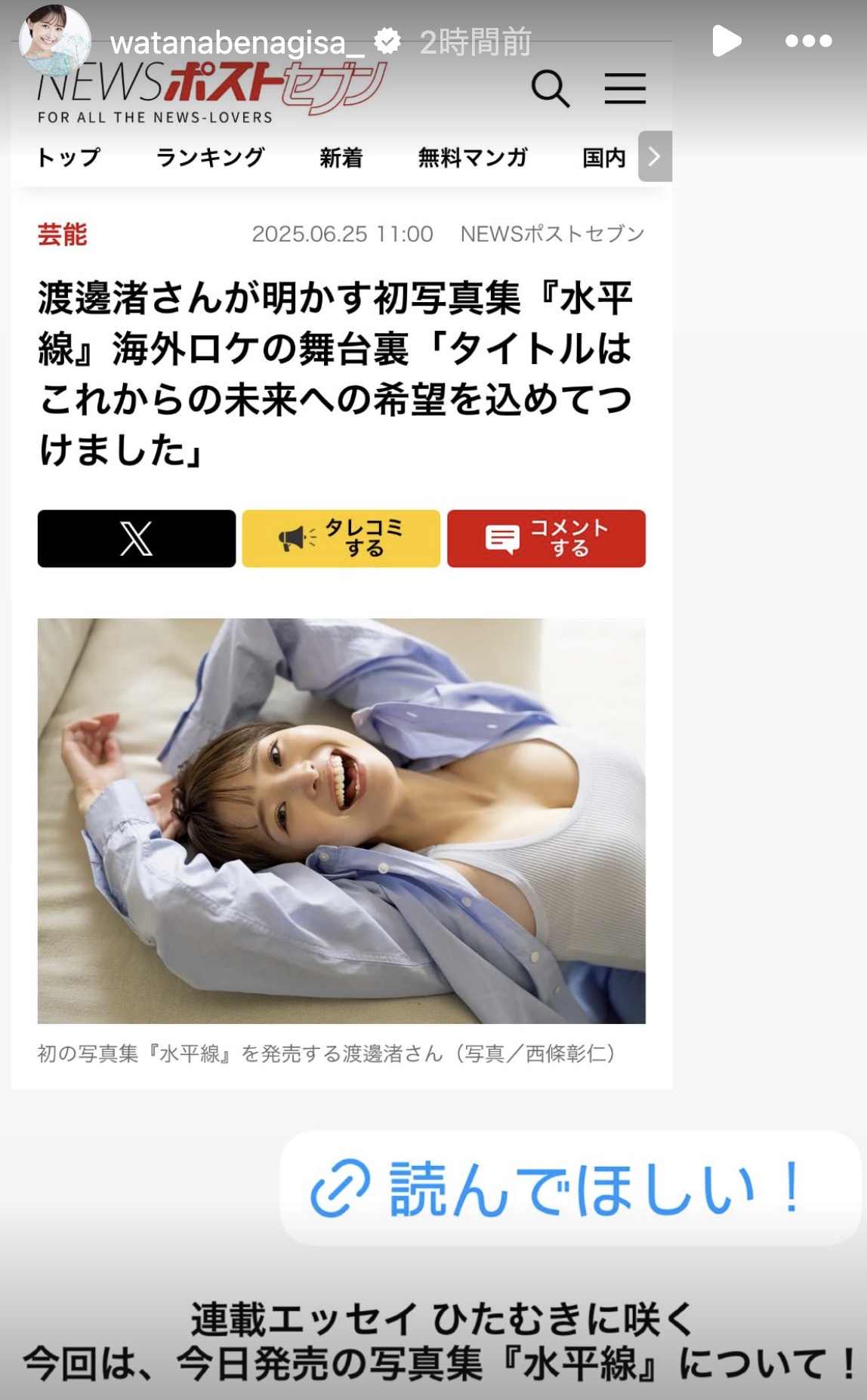 渡邊渚、初写真集『水平線』今日発売 「肌を露出するなんて普通は無理」「トラウマの再演だ」と言われ…「むしろ、できてしまうのです」