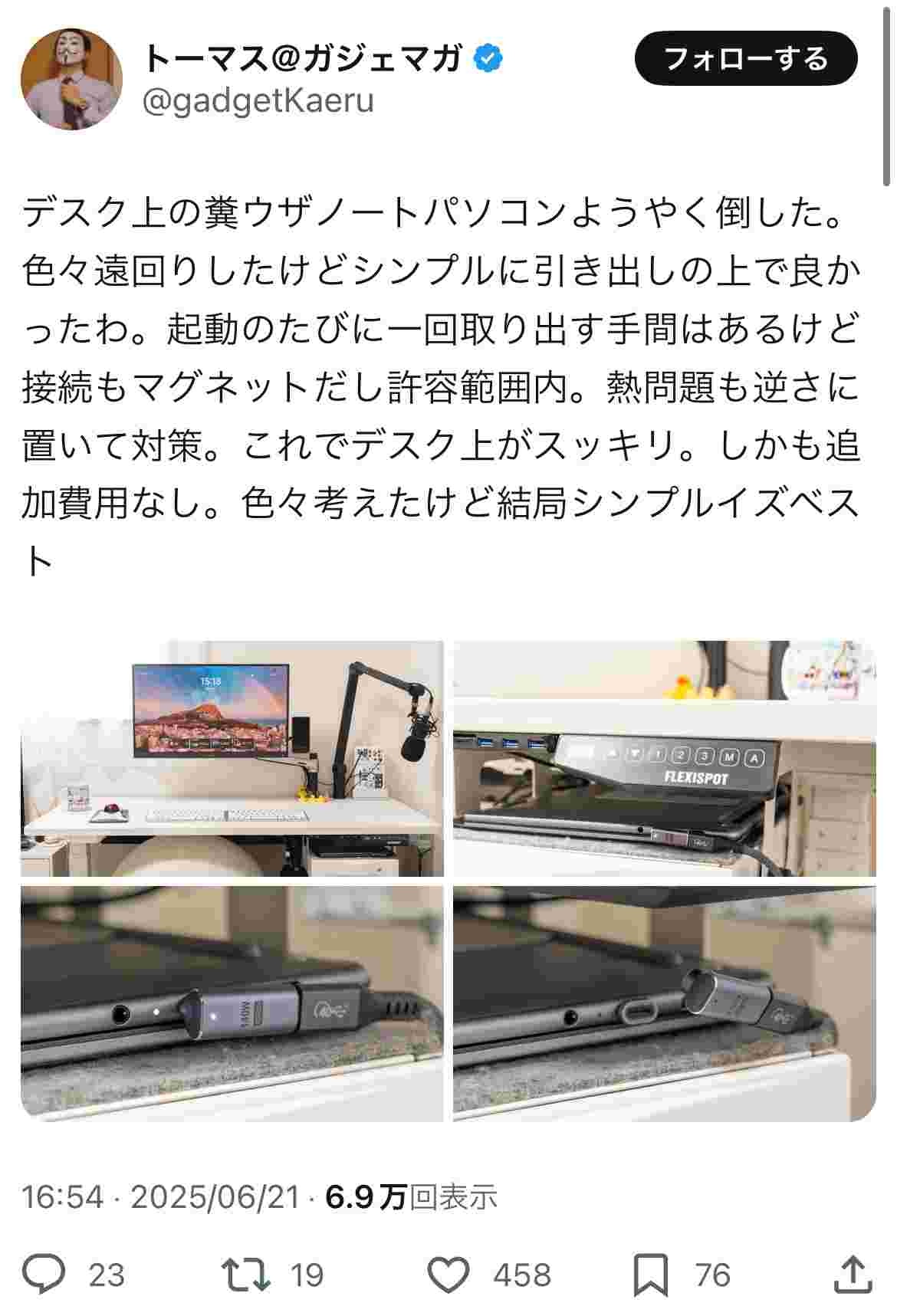 ガジェットオタク気取ってる割にデスク回りクソショボいな