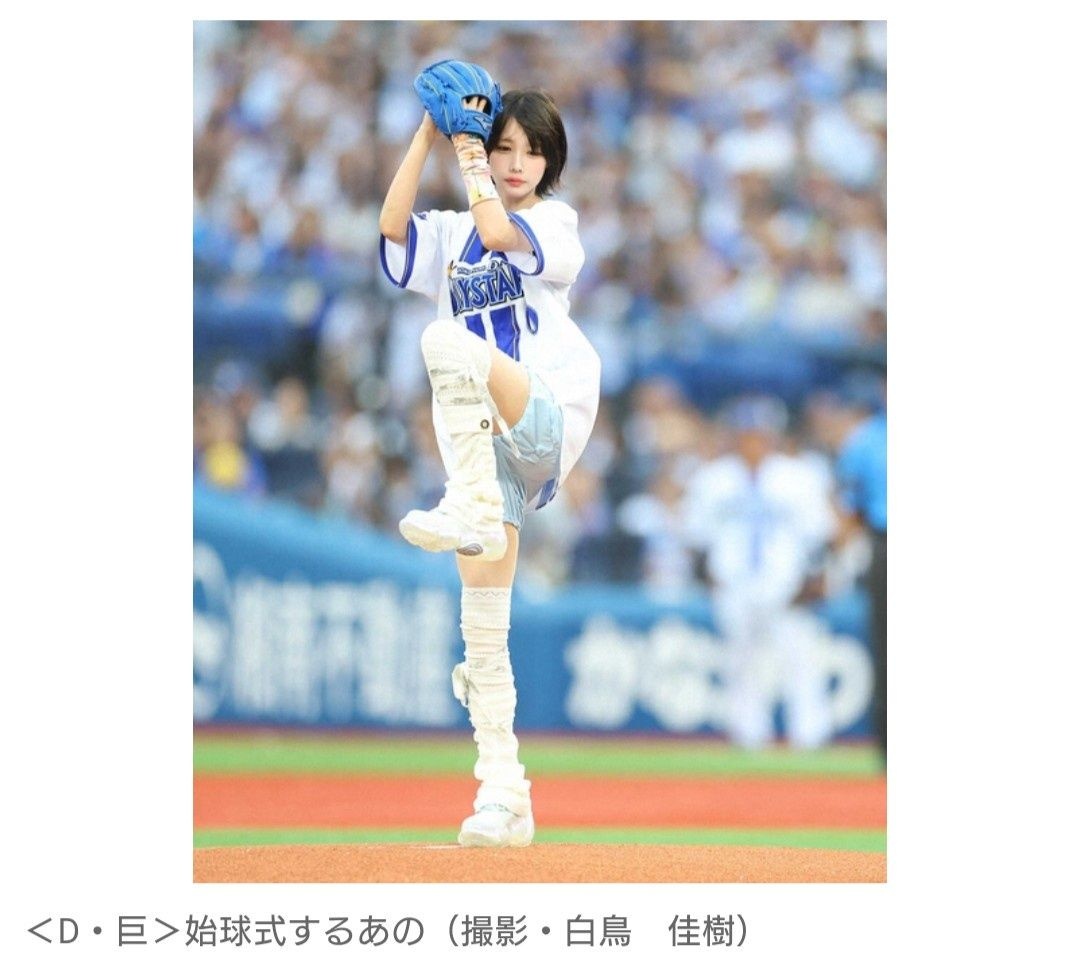 あのちゃんは12日、横浜スタジアムで行われたDeNA―巨人の始球式に登場。美しい弧を描いたボールは、ミットに届く直前でワンバウンドしたかどうかという“ほぼノーバウンド”でベースを通過した。
