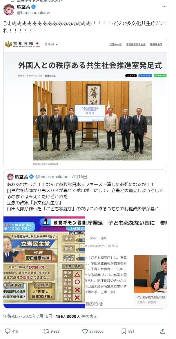 !extend:default:default:1000:512:donguri=0/4 暇空茜 (@himasoraakane) on Xうわああああああああああああああああ!!!!マジで多文化共生庁だこれ!!!!!!!!x.com
