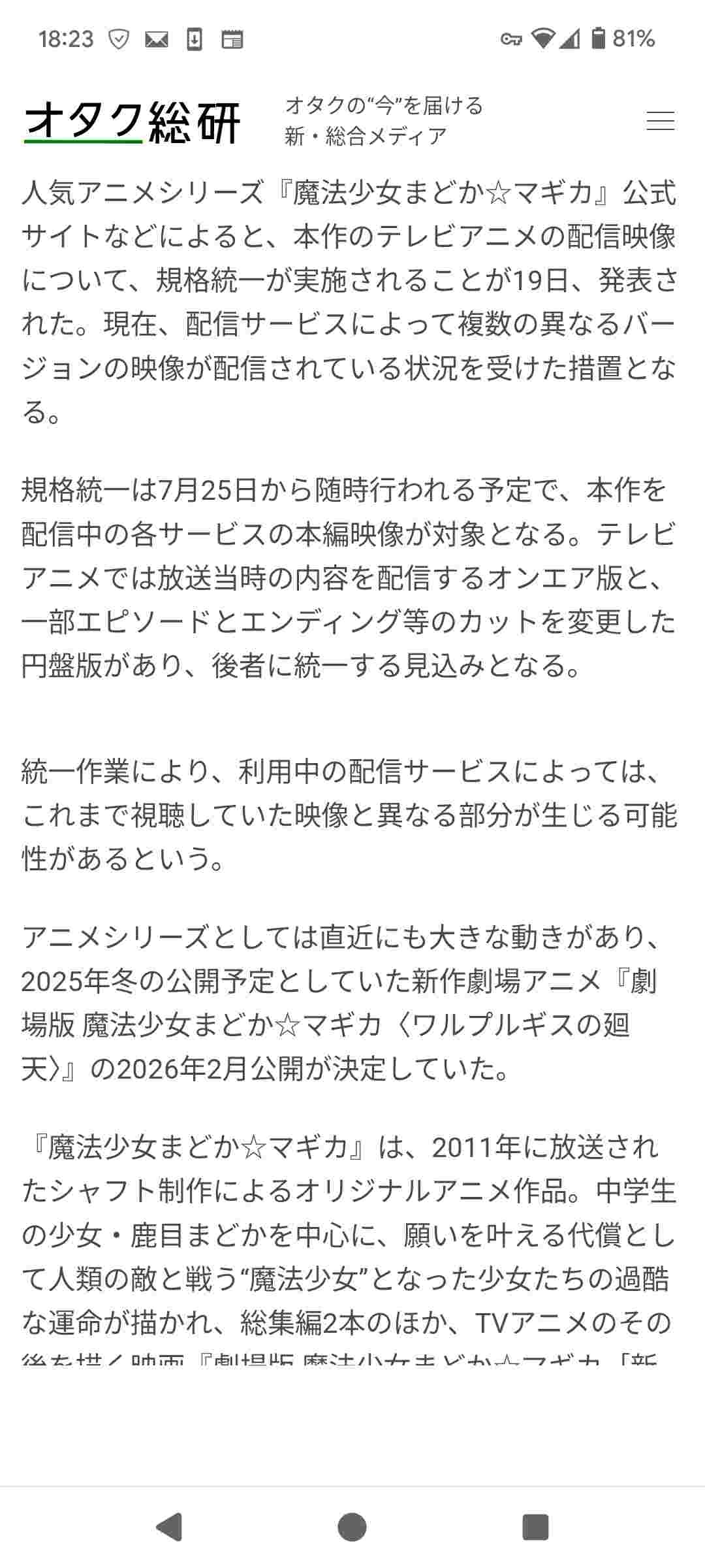 『魔法少女まどかマギカ』TVアニメの配信映像を規格統一へ 7月25日から順次実施 | オタク総研