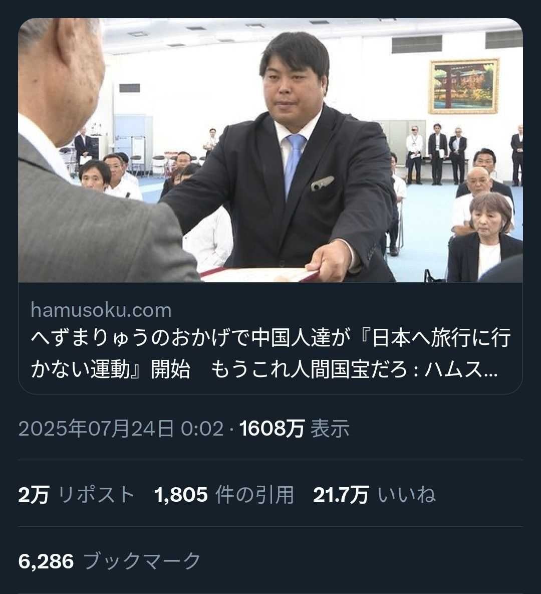 中国人、へずまりゅうを当選させた奈良県民にブチ切れ「もう奈良県に旅行は行かない。」