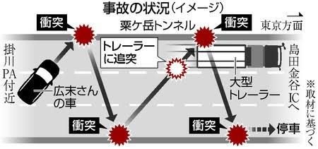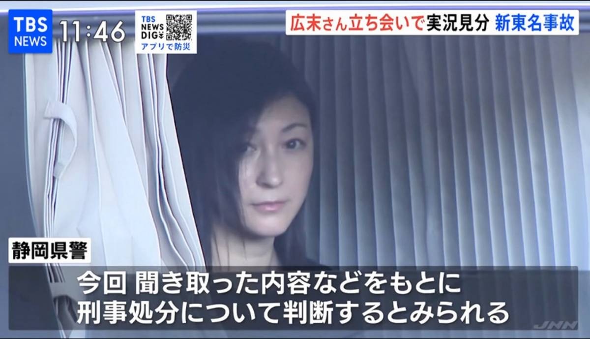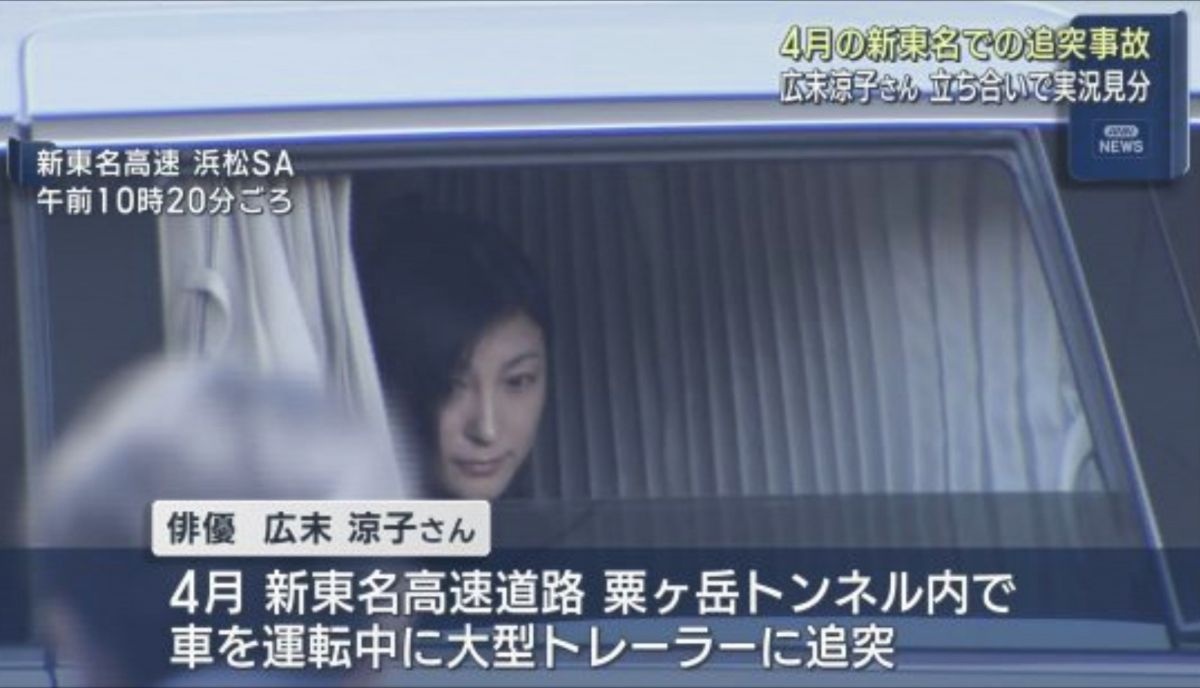 静岡県の新東名高速道路で4月に俳優広末涼子さん(45)が運転する乗用車が大型トレーラーに追突した事故で、県警は28日、広末さんを立ち会わせて現場周辺を実況見分した。