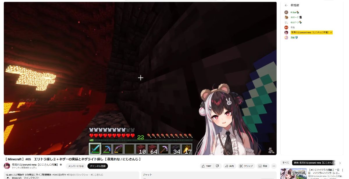 【画像あり】にじさんじ女性ライバー夜見れなの配信、同接1.2万人に対しチャット参加者がたった6人しかいない異常が発見される