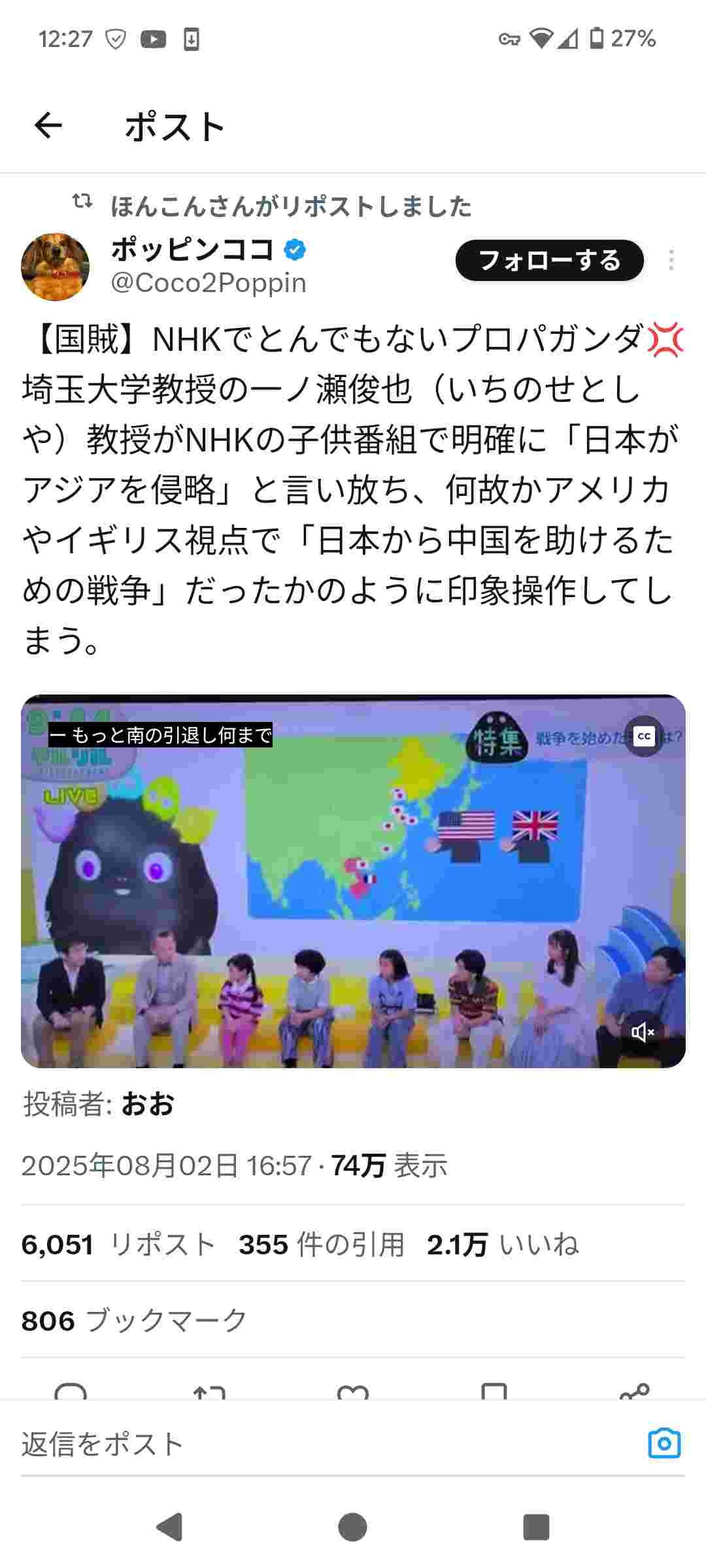 俺も観てたけど自虐史観フルな内容で気持ち悪かった