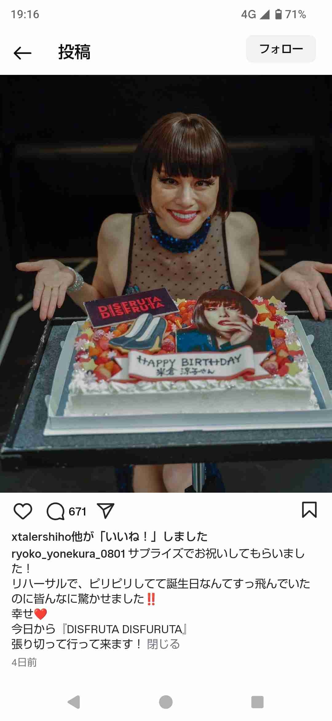 俳優の米倉涼子(50)が2日までに自身のインスタグラムを更新。8月1日に迎えた自身の誕生日をサプライズで祝福されたことを報告した。