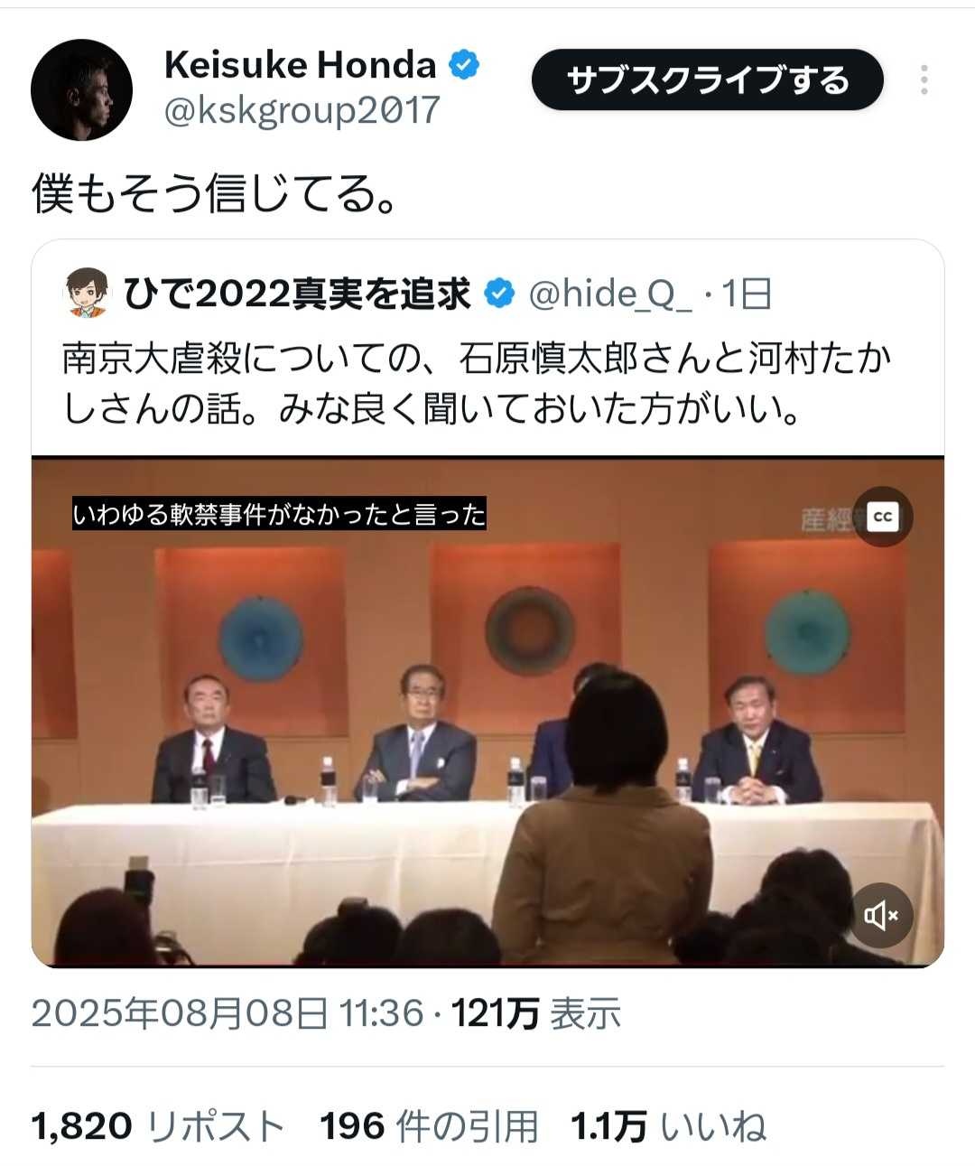 サッカーボール蹴ってただけの有名人が突然こんな事言いだすんだから