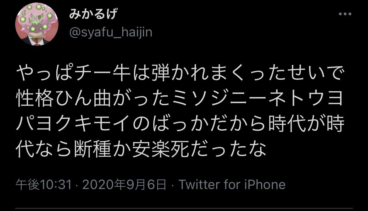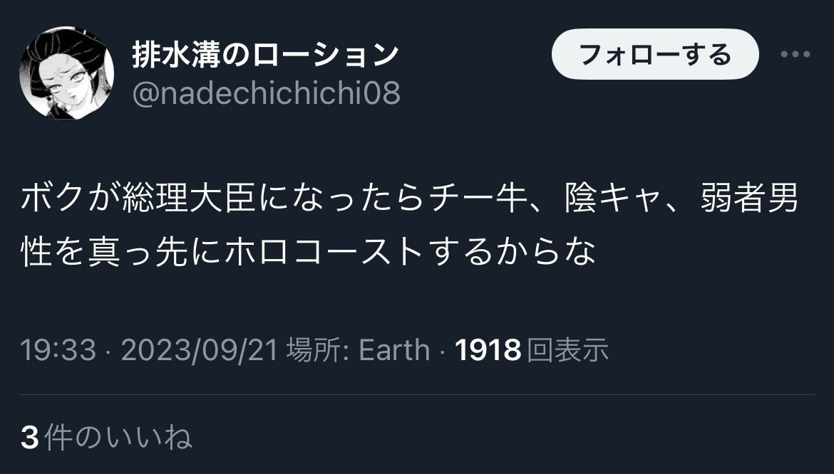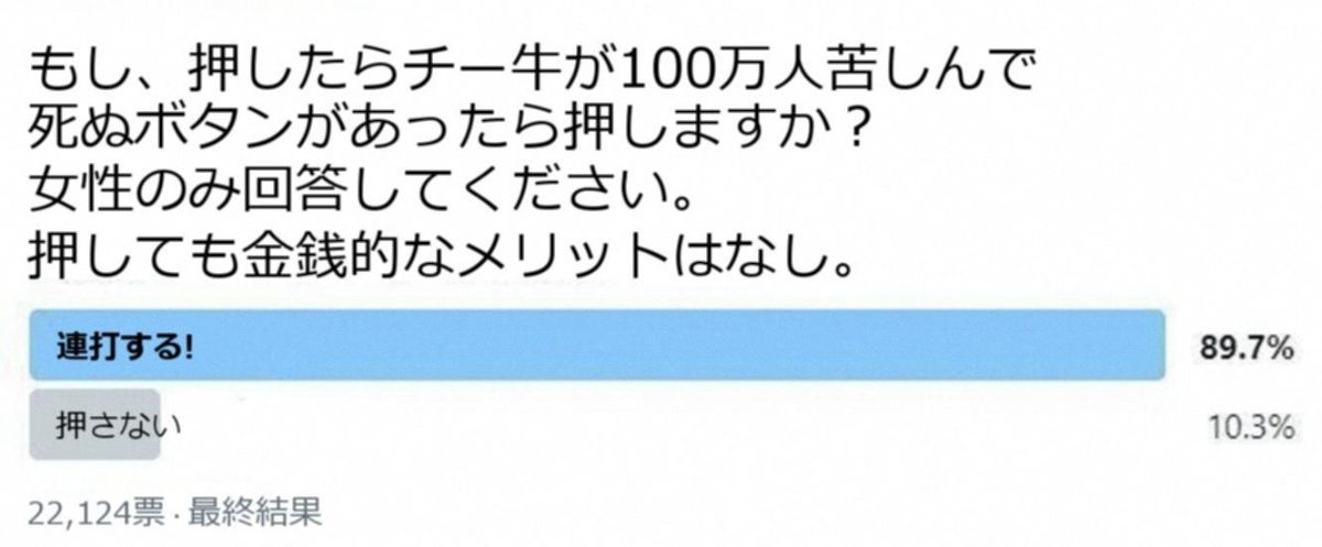 チー牛は糞フェミが死ぬボタンあったら押すから同族嫌悪