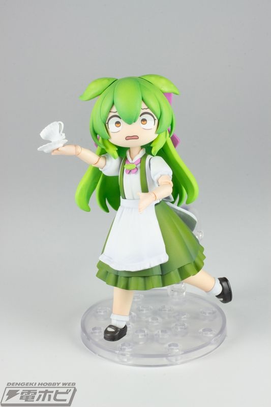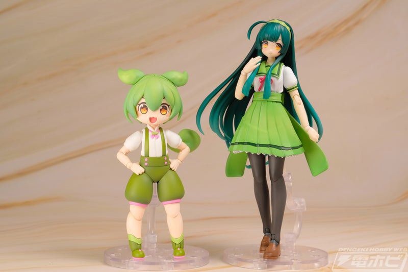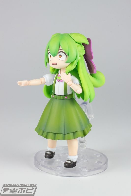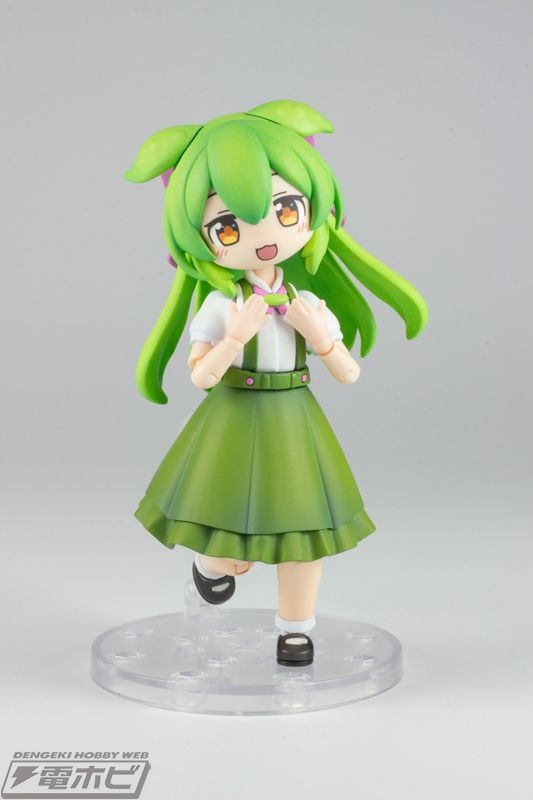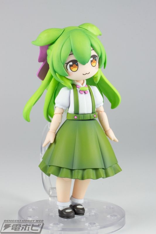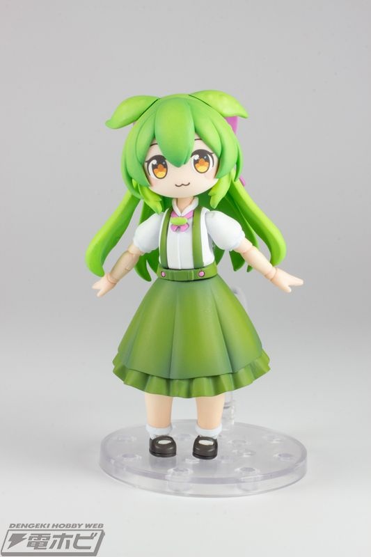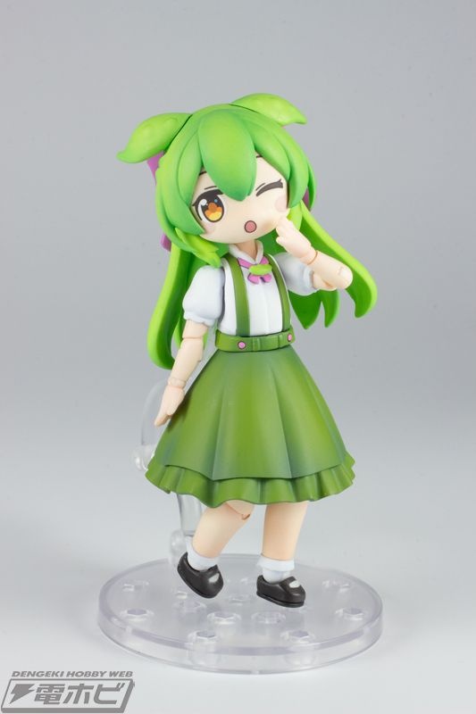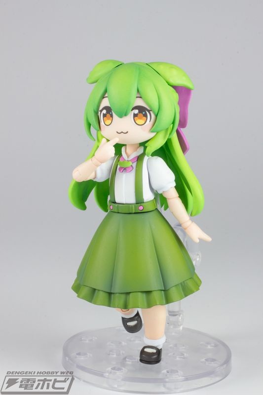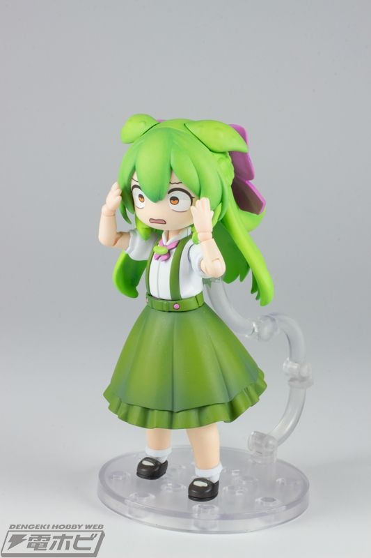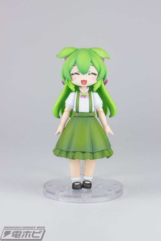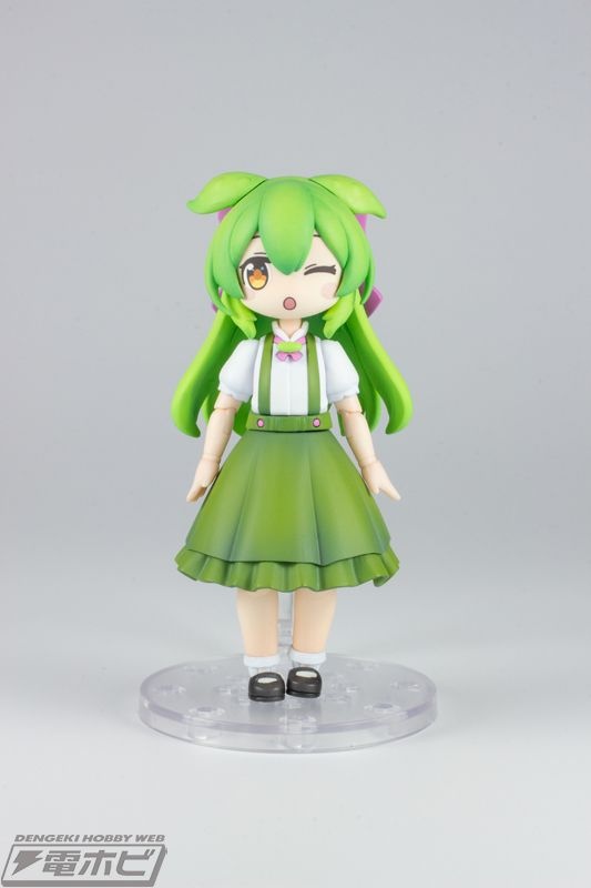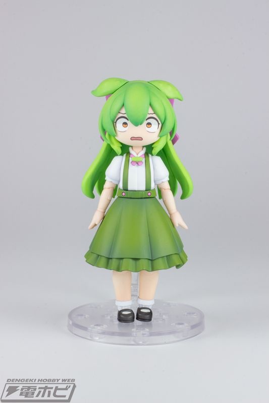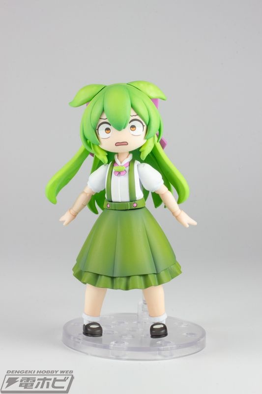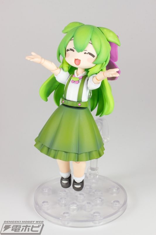 1/12スケールで可愛く再現されているずんだもん。簡単組み立てで遊びやすいアイテムです。また、多彩な表情やハンドパーツなどで、様々なシーンを演出可能です。