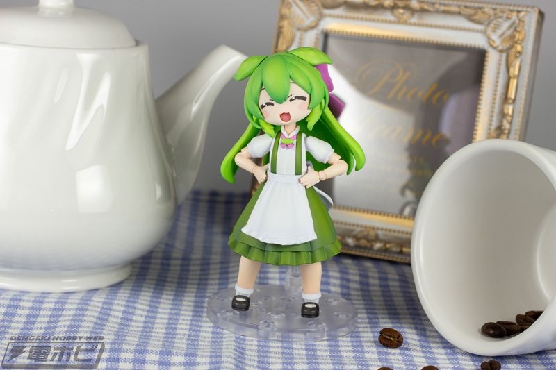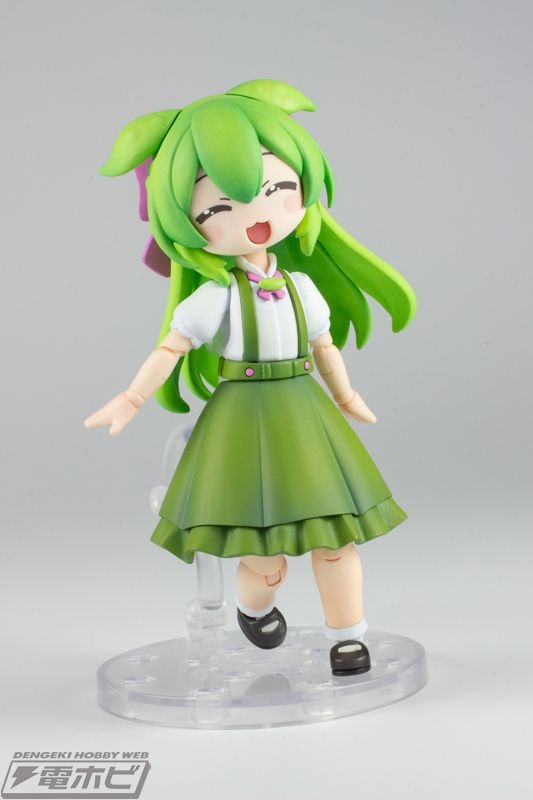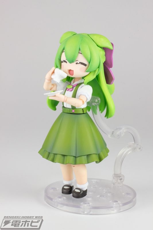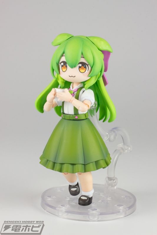 東北ずん子を可愛く立体化。キットは基本色分け済みとなり、素組みでもイメージに近い姿を楽しめます。立ちポーズに歩きポーズ、ぺたんこ座りなど様々なポージングも楽しめます。また、2種の印刷済みの顔のほかに、豊富な表情のデカールも封入。ずんだ餅とお茶も付属します。